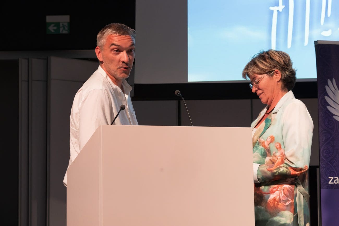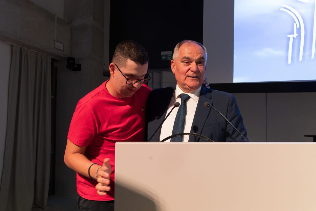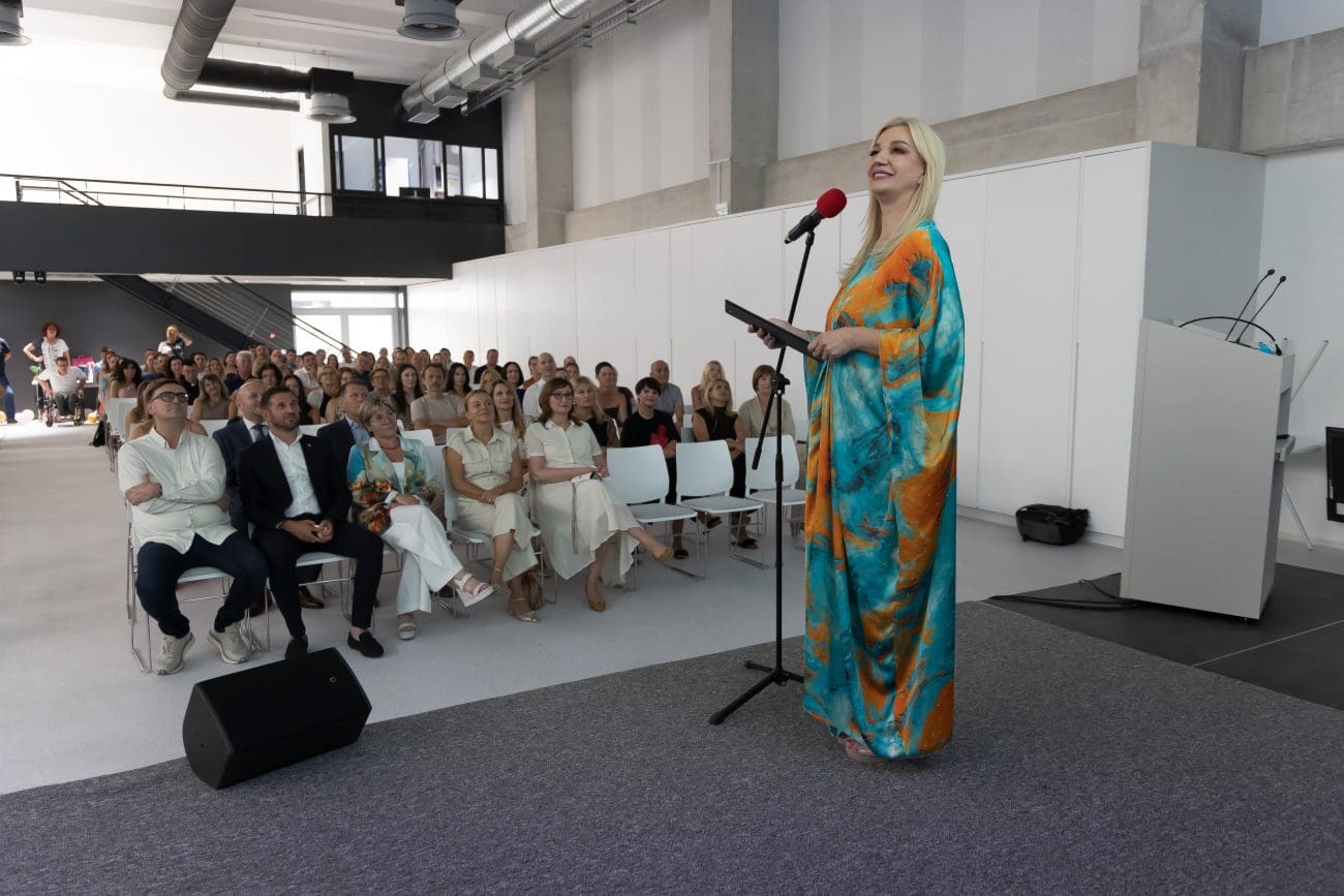 Korisnici centra Andrea Mutak i Antonio Čović svatko su na svoj način oduševili punu dvoranu Tehnološkog parka. Andrea je pri tome i zaposlenice udruge s dragocjenim iskustvom iz prve ruke, a Čović je oduševio sve svojom iskrenošću i direktnošću te je svojim govorim najavio župana Blaženka Bobana s kojim je izišao na govornicu.
