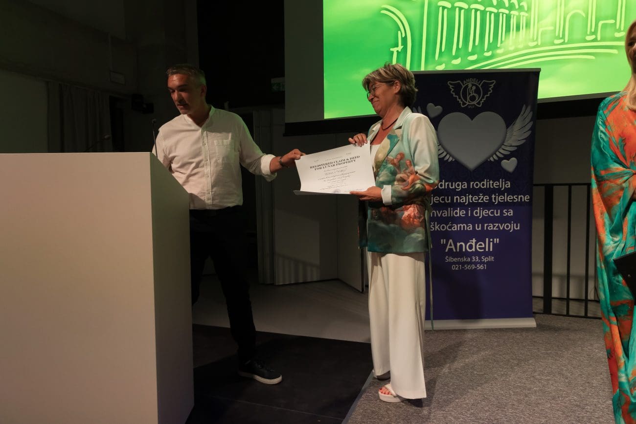 Za svoj 20. rođendan, splitska Udruga Anđeli primila je jedan od najneobičnijih i najdirljivijih poklona – vlasništvo nad parcelom na Mjesecu. Poklon je stigao od Rotary kluba Split, kao simbolična gesta priznanja za dvadeset godina nesebičnog rada s djecom s najtežim tjelesnim invaliditetom i višestrukim teškoćama.