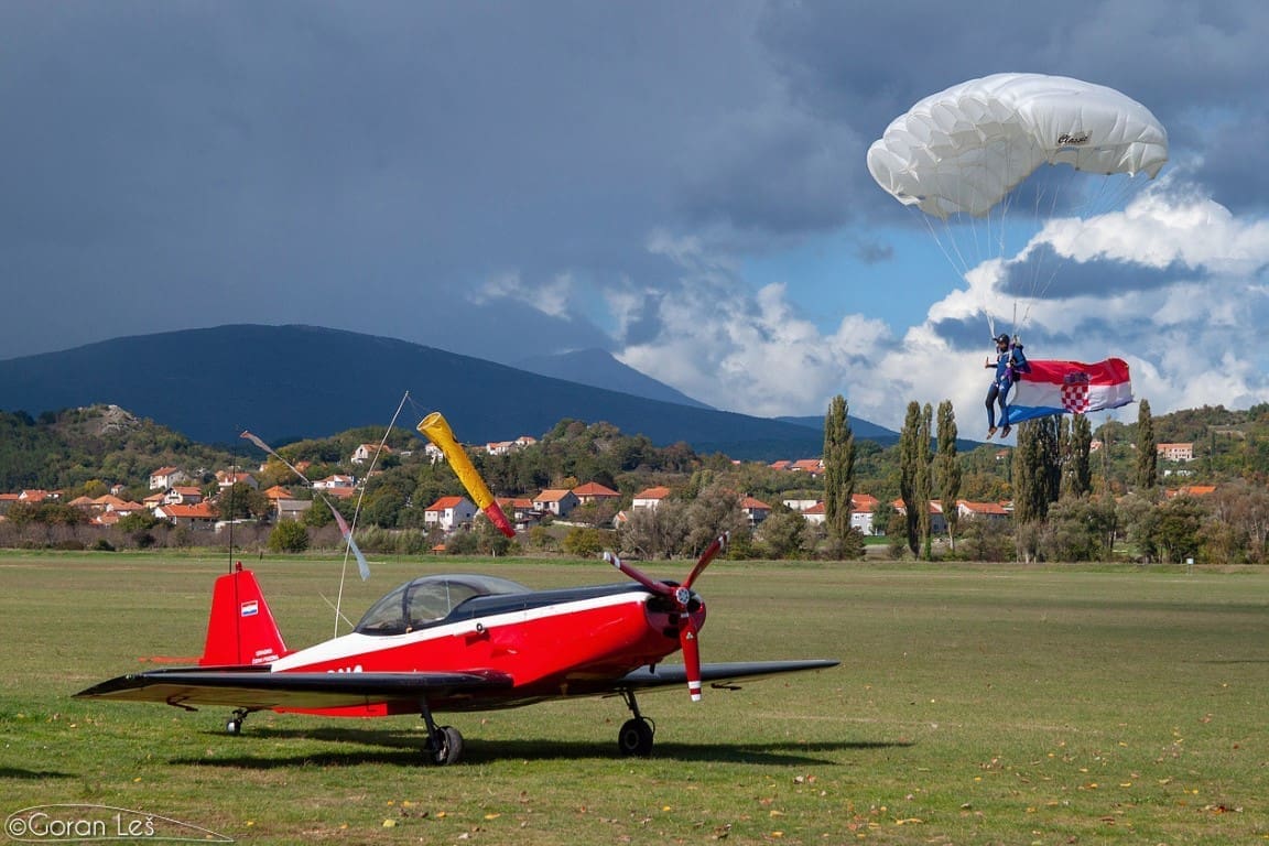 Tijekom svečanosti na Piketu padobranci Aero kluba Sinj Nikola Bašić, Mirko Malbaša, Matko Vuković i Zlatko Ugrin izveli su skokove sa zastavama RH, Udruge vetrana 4 gbr, 2.bojne Cro angelsi i Grada Sinja.