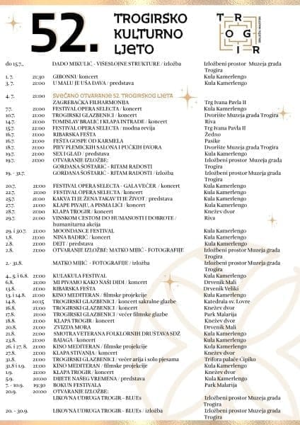 Ovogodišnje, 52. izdanje trogirskog kulturnog ljeta otvaramo spektakularnim koncertom Zagrebačke filharmonije koji će se održati 4. srpnja u 21 sat na glavnom gradskom trgu u Trogiru.