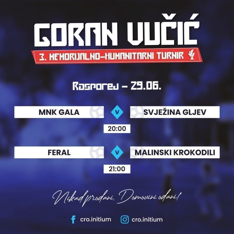 Jučer je na Planici u Glavicama otvoren treći po redu Memorijalni malonogometni turnir "Goran Vučić" posvećen brigadiru Hrvatske vojske, sinu Cetinske krajine, ratniku i patriotu koji je ostavio neizbrisiv trag u teškim vremenima Domovinskog rata. Sudjelovao je u brojnim vojnim akcijama, a između ostalog vodio je obranu Rame i hrvatskog pučanstva u BiH.
