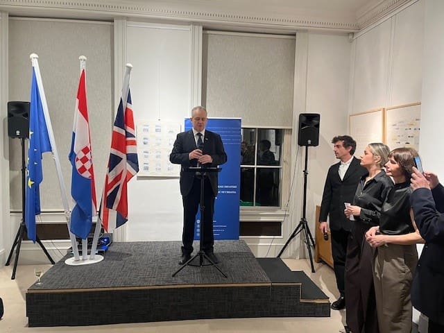 Uz autoricu izložbe Gordanu Špoljar Andrašić, na službenom dijelu otvorenja sudjelovao je i privremeni otpravnik poslova Veleposlanstva RH u Londonu, Davor Ljubanović koji se prigodno obratio uzvanicima.