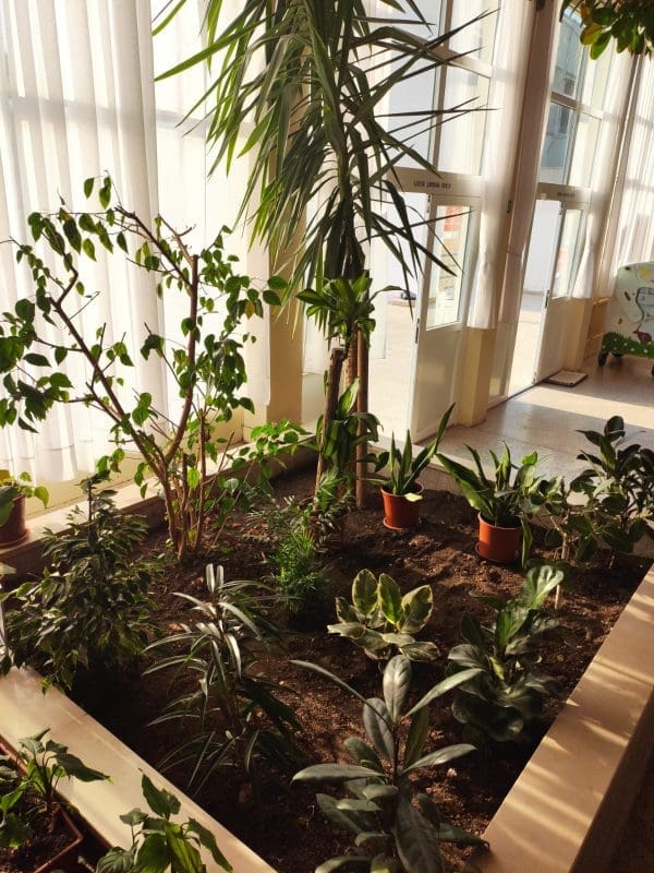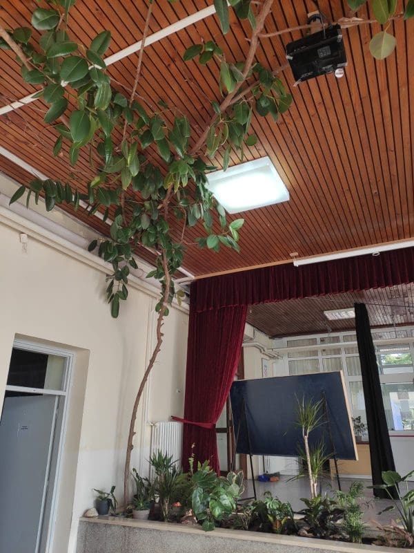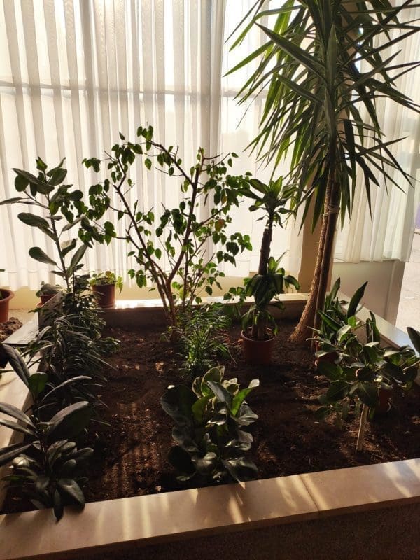 Nakon što smo ozelenili učionicu kemije sa preko 50 sadnica sobnog bilja, nastavljamo naš projekt ozelenjavanja sadnjom sobnog bilja u školskom atriju.