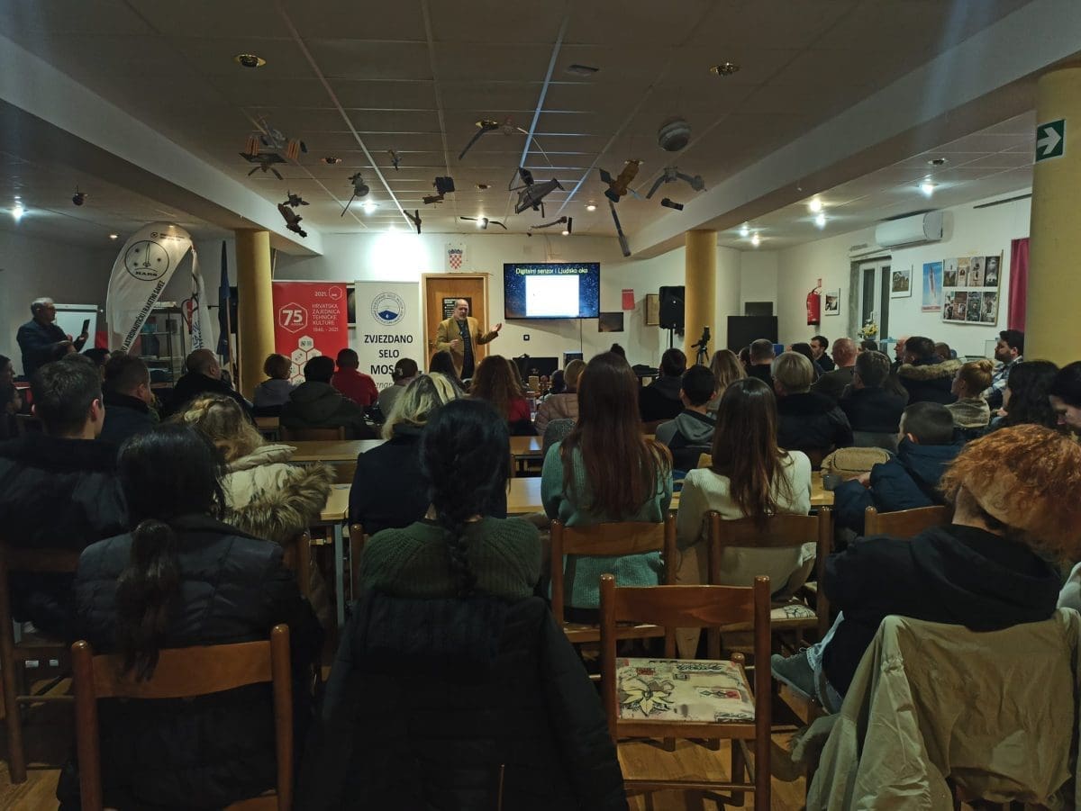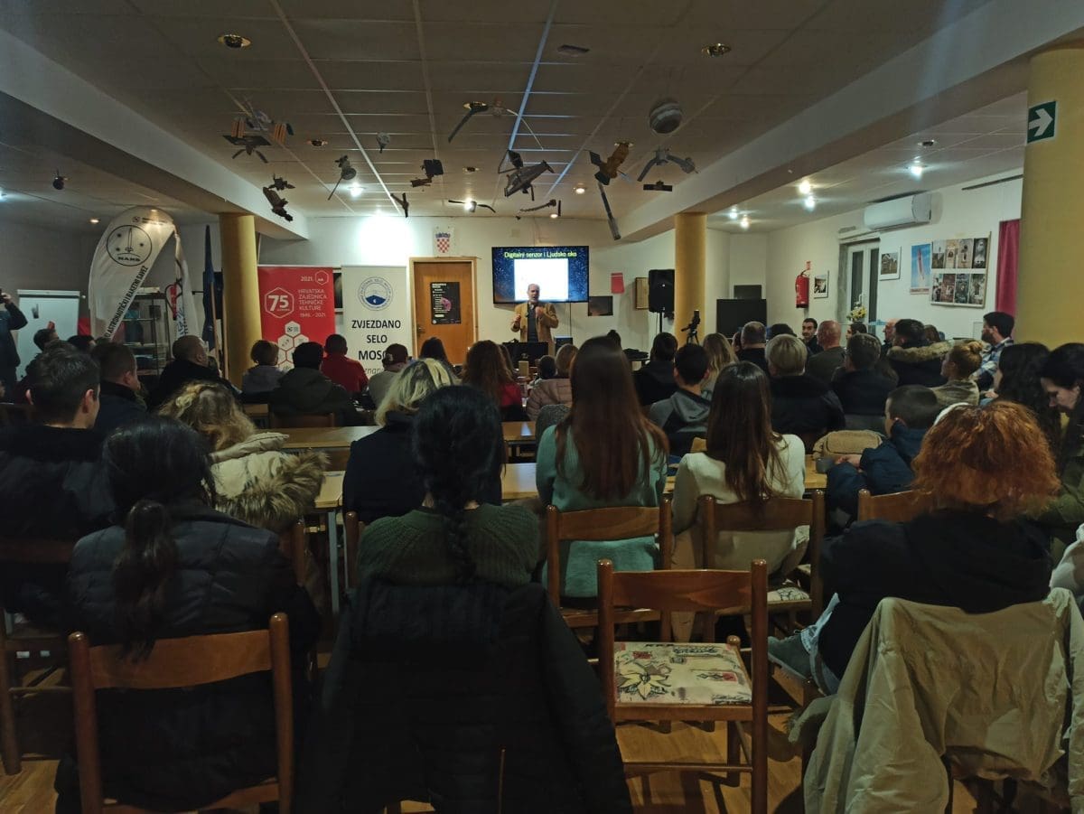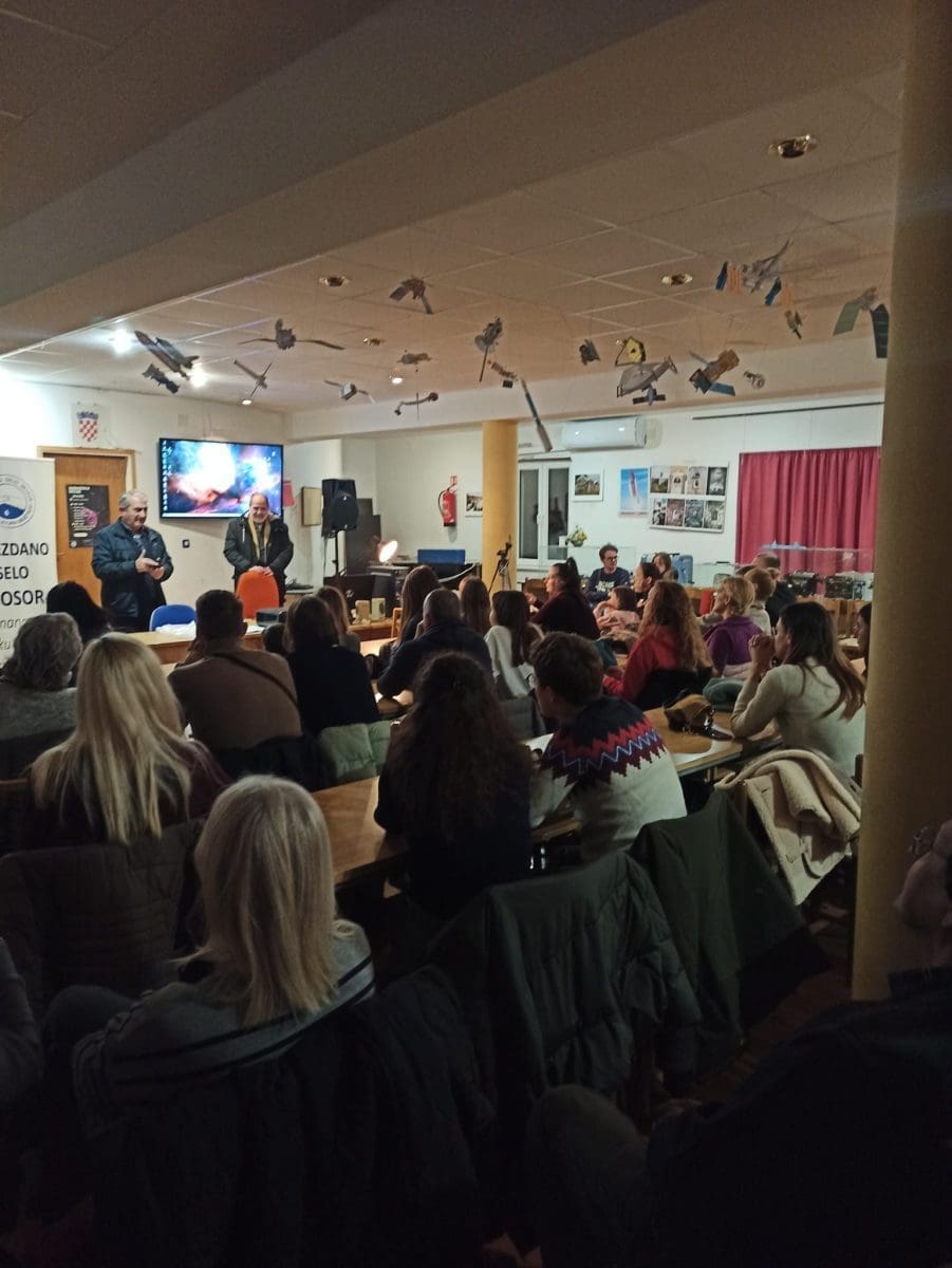 Predavanje pod nazivom 'Svemir u senzorima i ljudskom oku' održao je Saša Nuić, predsjednik Astronomskog društva Beskraj iz Zagreba. U ovom inspirativnom predavanju istaknuo je kako razni senzori i mjerni instrumenti omogućuju znanstvenoj zajednici otkrivanje novih spoznaja o prirodi svemira. A, pitanje je bilo, kako uvid u svemir djeluje na ljudsko društvo izvan znanstvene zajednice?