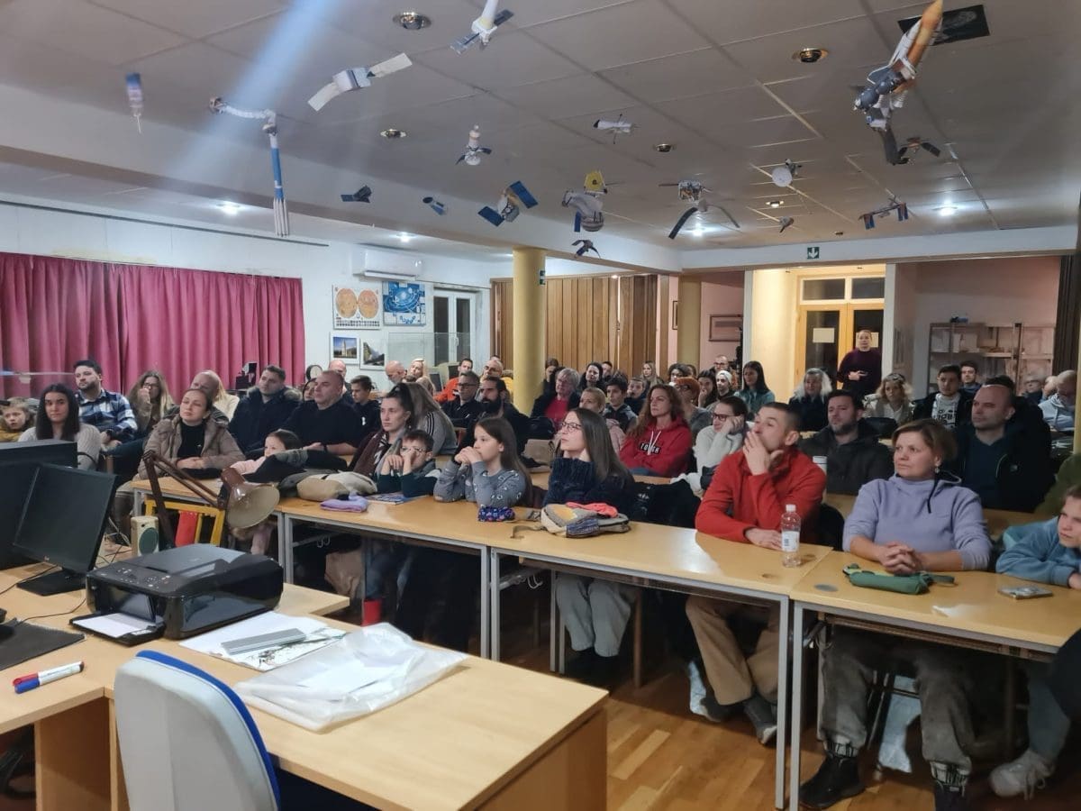 Kao što je bilo i najavljeno, prošlog petka u organizaciji Hrvatskog astronautičkog i raketnog saveza i Zvjezdanog sela Mosor, održana je 'Svemirska večer' u Zvjezdarnici u Gornjem Sitnom. Netom prije predavanja, nazočne posjetitelje su u ime organizatora pozdravili Tomislav Nikolić, voditelj Zvjezdanog sela Mosor i Bogomir Hren, predsjednik Hrvatskog astronautičkog i raketnog saveza, koji je prisutne pozdravio u ime HARS-a i Hrvatske zajednice tehničke kulture.