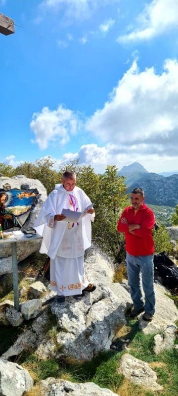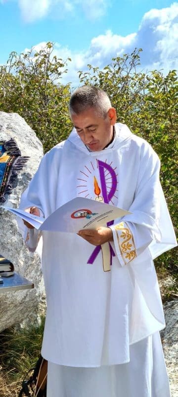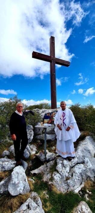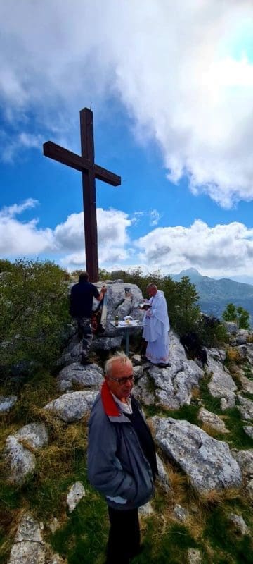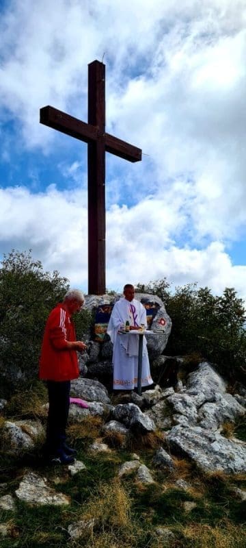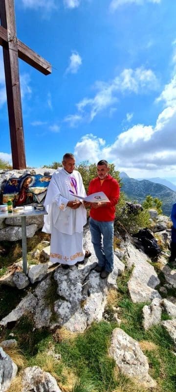 Misu predvodi don Dražen Balić, svećenik koji održava sve mise na planinama od Biokova, Mosora, Kozjaka Dinare i Kamešnice. Danas mu je, tom prilikom, uručen brončani znak HPS-a za doprinos planinarstvu.
