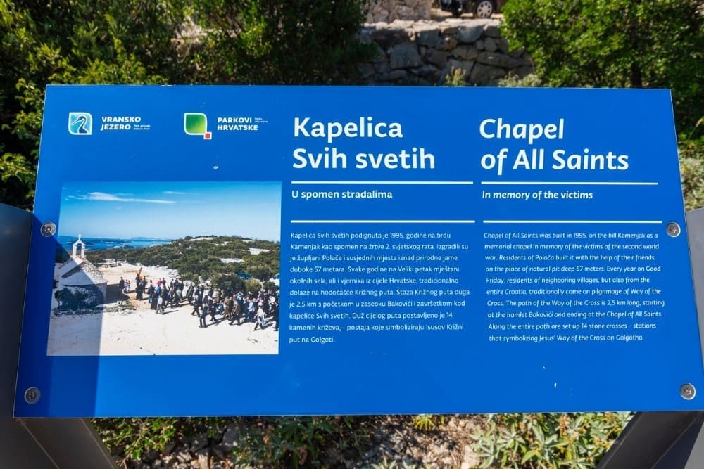 - Vidikovac Kamenjak je dio parka izgrađen 2007. godine sa sredstvima Europske Unije. Prije svega je tu bila kapelica Svih svetih i jama koja se zove Kamenjarka. Ona je specifična po tome jer je to prirodna jama duboka 58 metara i unutra su bili ubačeni živi Hrvati od strane Partizana za vrijeme II.svjetskog rata. To je povezano s ovih 14 križeva koji simboliziraju križni put. Svake godine na Veliki Petak održava se misna procesija od prve postaje dolje do ove zadnje gore - objašnjava nam.