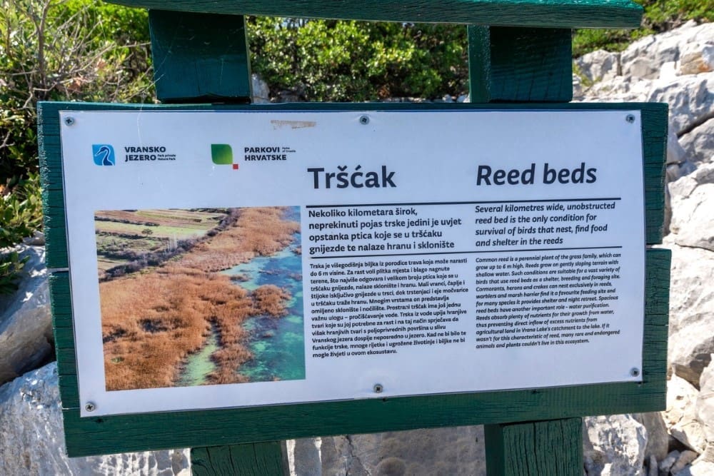 Na području info centra možete dobiti više informacija o Parku prirode, kupiti suvenire s motivima Vranskog jezera, biciklističku i izletničku kartu, a možete i uživati u specijalitetima tradicijske konobe.