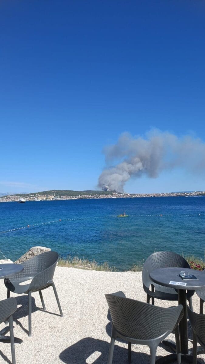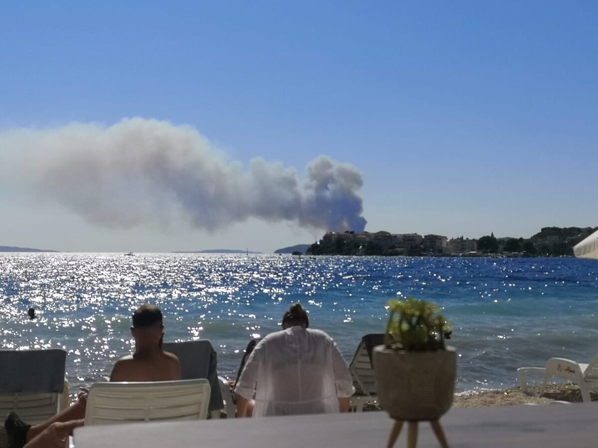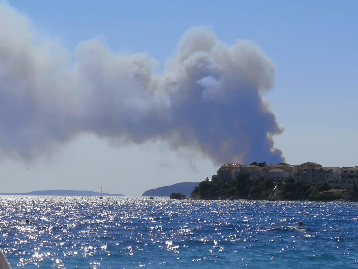 16:27 - Brojni čitatelji šalju nam fotografije. Požar se vidi i iz Primoštena i susjedne Šibensko-kninske županije. Također, kako smo ranije i pisali, i iz Splita.