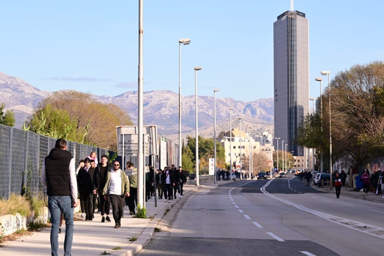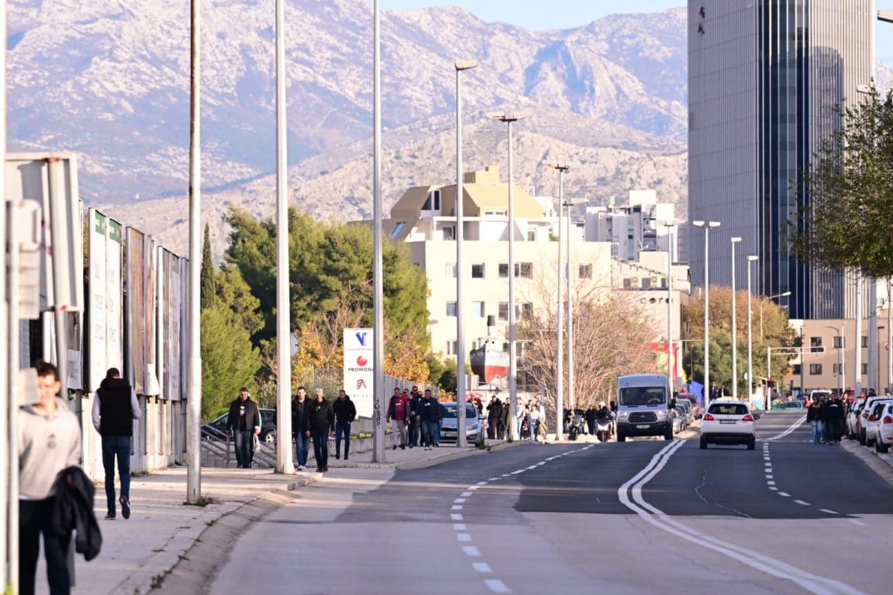 Pojačan promet, kolone bijelih dresova i pjesma Torcide obilježili su navijačko zagrijavanje prije prvog sučevog zvižduka.