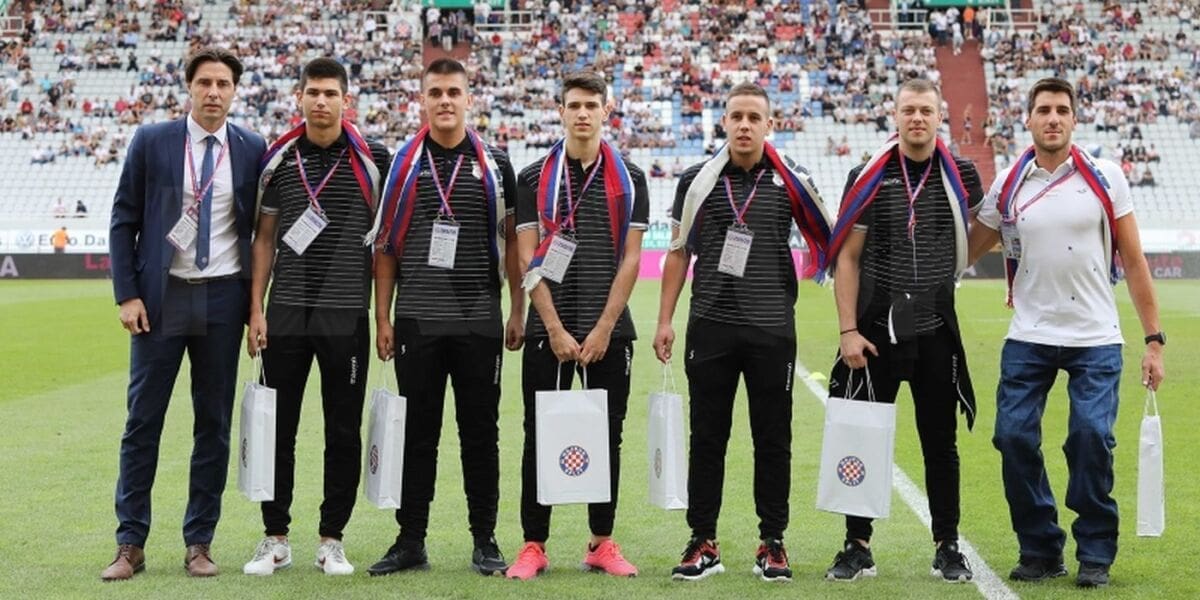 Njima je uoči početka utakmice prigodne poklone u ime HNK Hajduk uručio sportski direktor Saša Bjelanović.