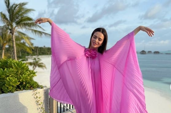 U subotu je objavila fotografije u elegantnoj širokoj rozoj haljini brenda Max Mara, koja je trenutno na sniženju i košta 1147 eura, dok joj je puna cijena bila 2163 eura.