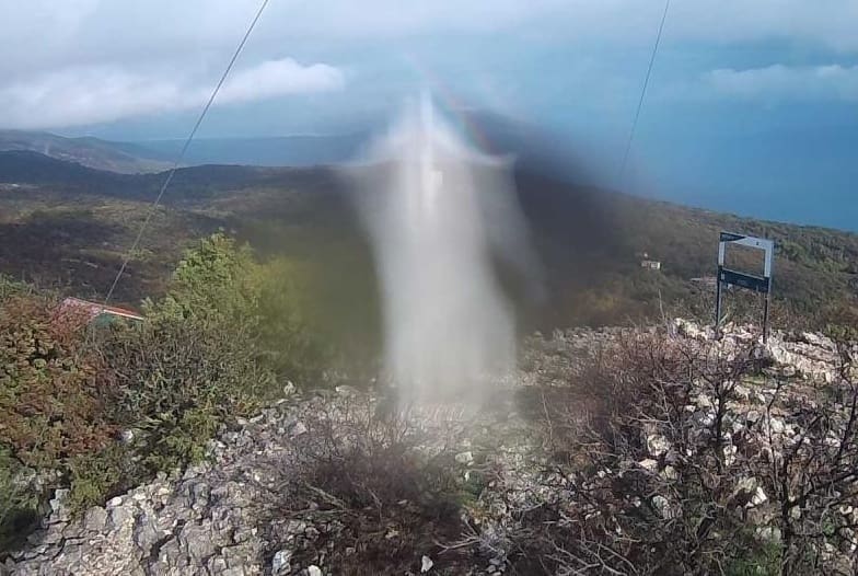 Kombinacija loma sunčeve svjetlosti i kapljica kiše na kameri uz isparavanje vode s betonskog križa, 15-ak minuta stvarala je dojmljive prizore.