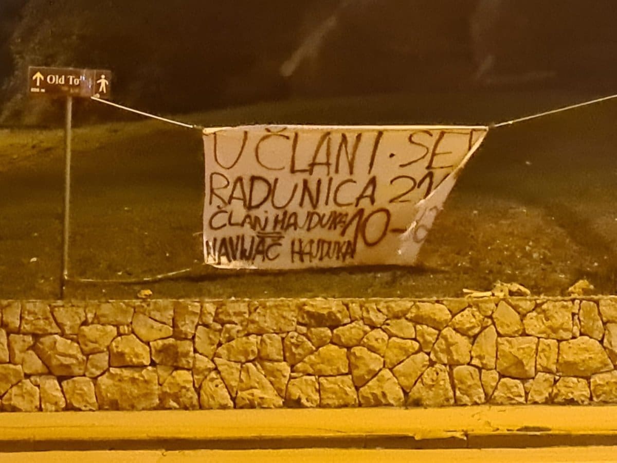 Hajduk se već nalazi na 42.000 članova, a nova akcija će se održati u Radunici. To se da zaključiti iz transparenta, koji je postavljen u Ulici slobode.