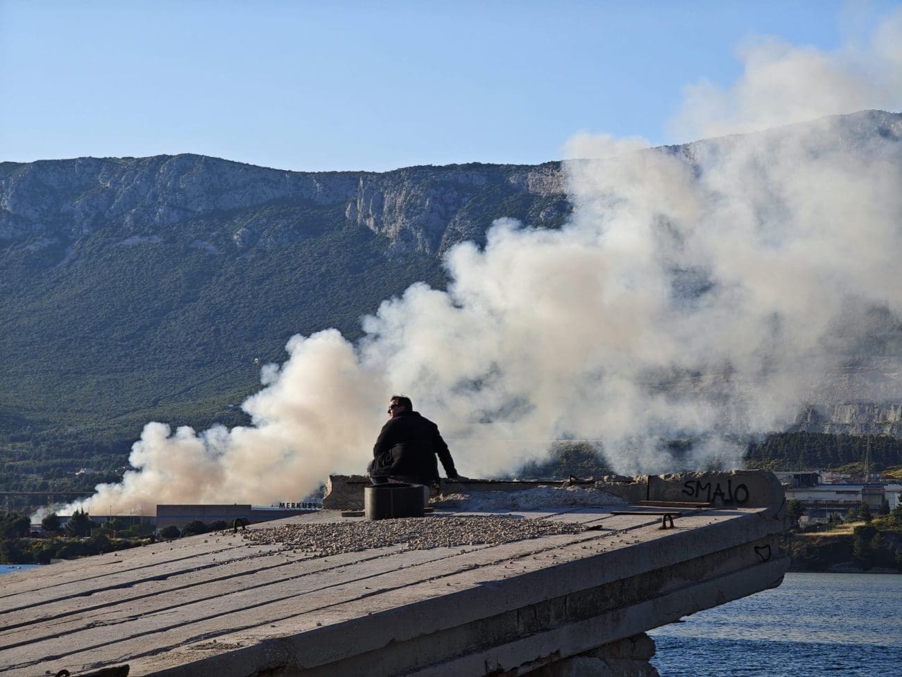 Naš foto suradnik Eddy Meštrović snimio je zanimljive prizore građana koji gledaju u daljini dok se crni dim izdiže iznad Kaštela.