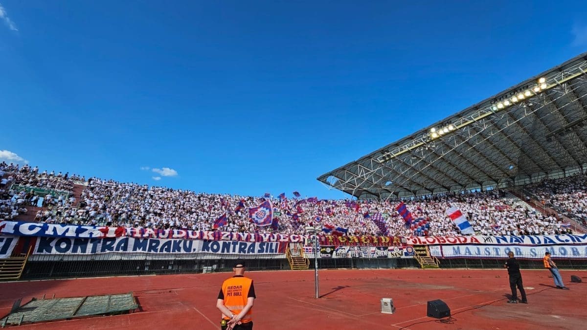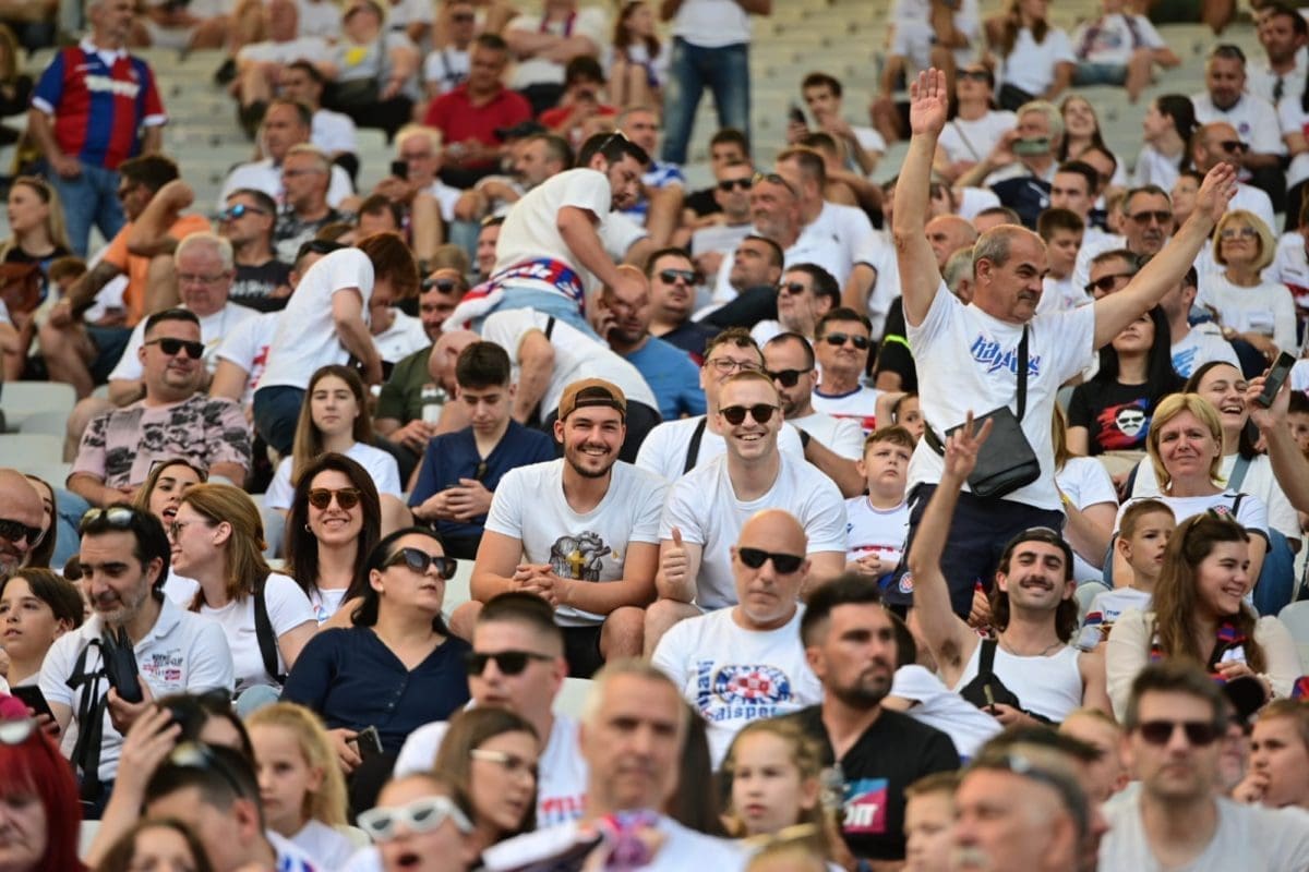 Poljudska ljepotica ispunjena je navijačima u bijelim majicama. I mlado i staro došlo je pozdraviti svoje Bile i čestitati im na odličnom kraju sezone i trofeju. A potrudili su se pripremiti i zanimljive transparente.