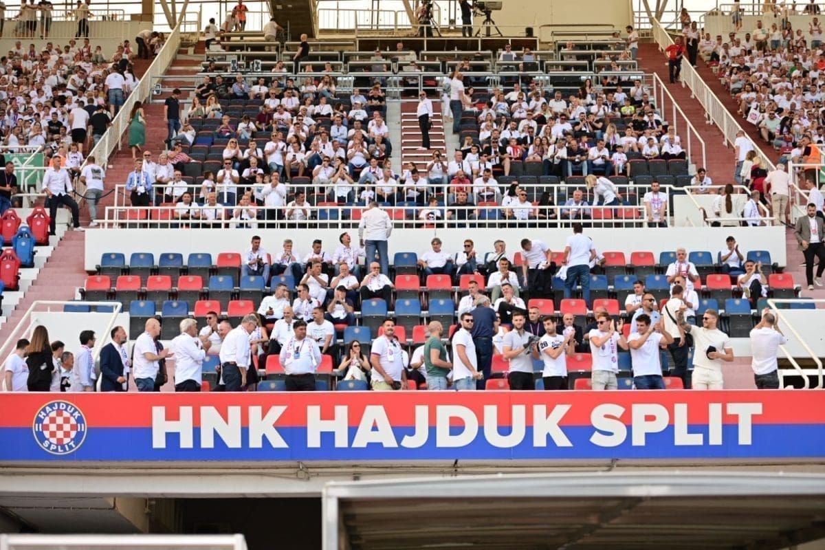 Uoči početka zadnjeg prvenstvenog kola SuperSport HNL-a, cijeli je Poljud oduševljeno pozdravio članove Vaterpolo kluba Jadran, aktualnog prvaka Hrvatske.