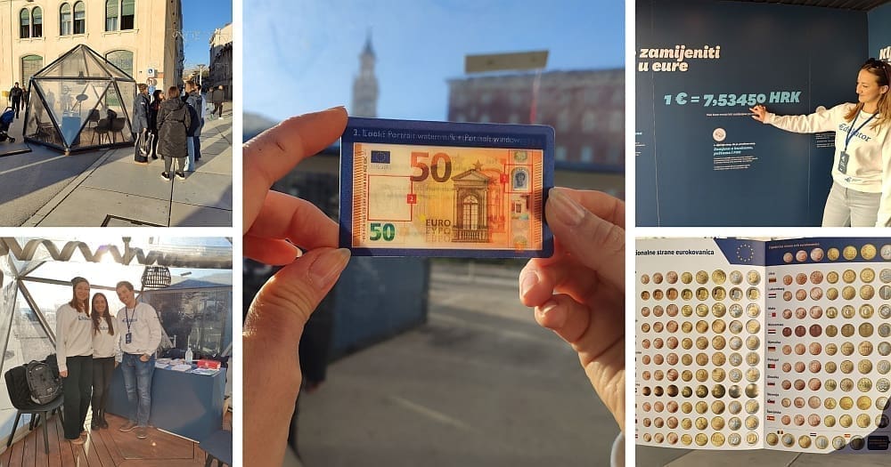 Na splitskoj Rivi danas je otvorena putujuća izložba „Euro na kotačima“. Namijenjena svim uzrastima, ova izložba je projekt koji, u sklopu informativne kampanje nadolazeće zamjene hrvatske kune eurom, provode Vlada Republike Hrvatske i Hrvatska narodna banka, a uz sufinanciranje Europske unije.