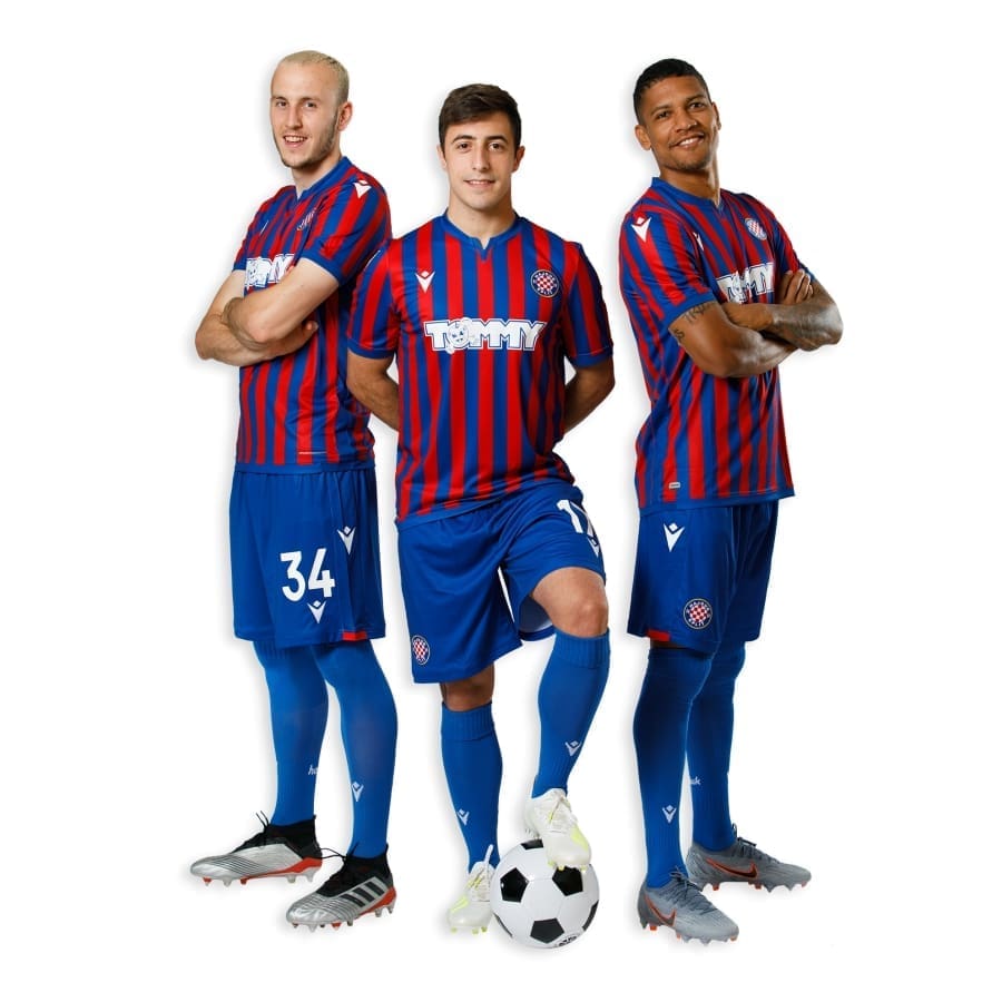 Natjecateljska garnitura zaokružena je s dvije opcije kratkih hlačica i štucni: bijelom i plavom. Sredinom štucni izvezen je natpis „hajduk“ sa stražnje strane, a s prednje Macron logotip.