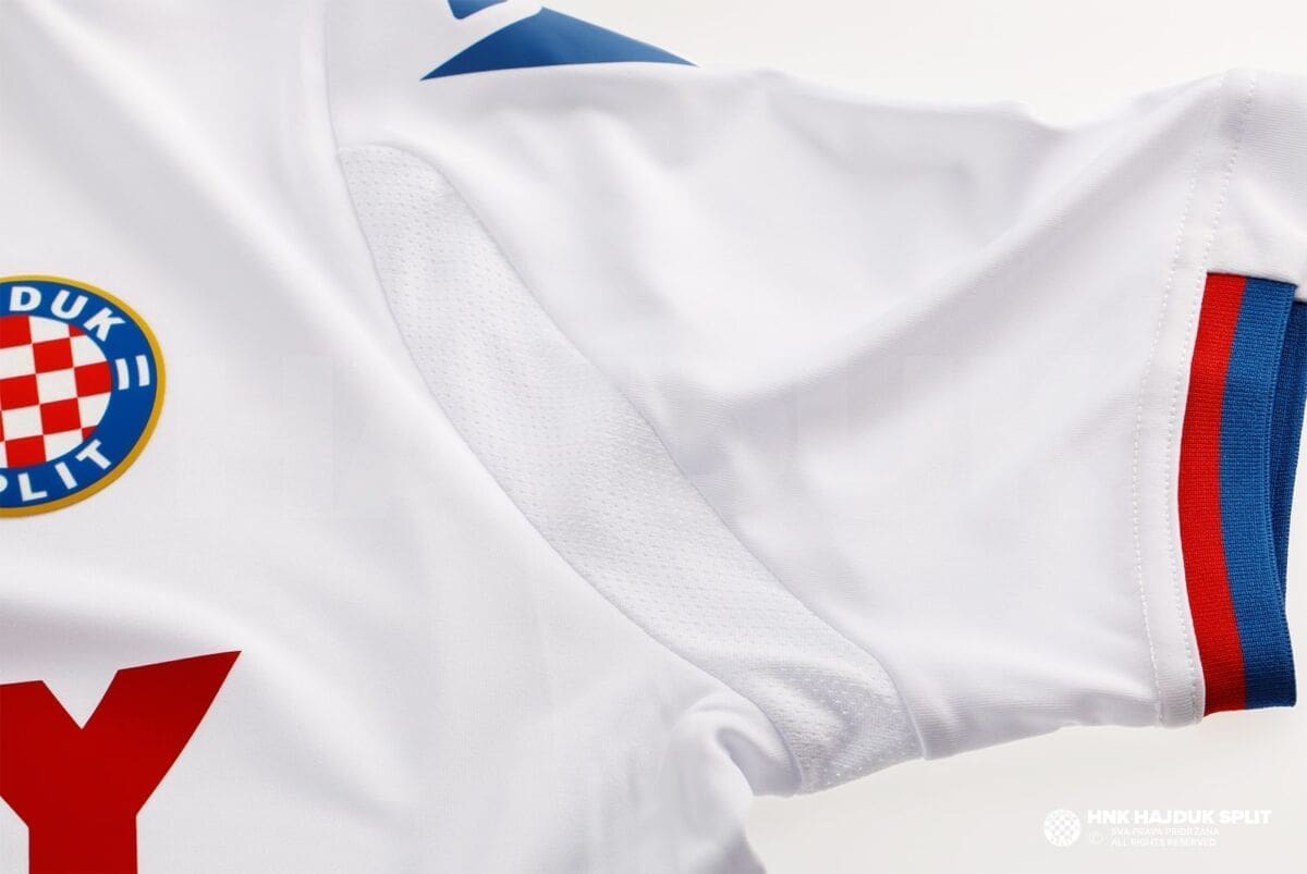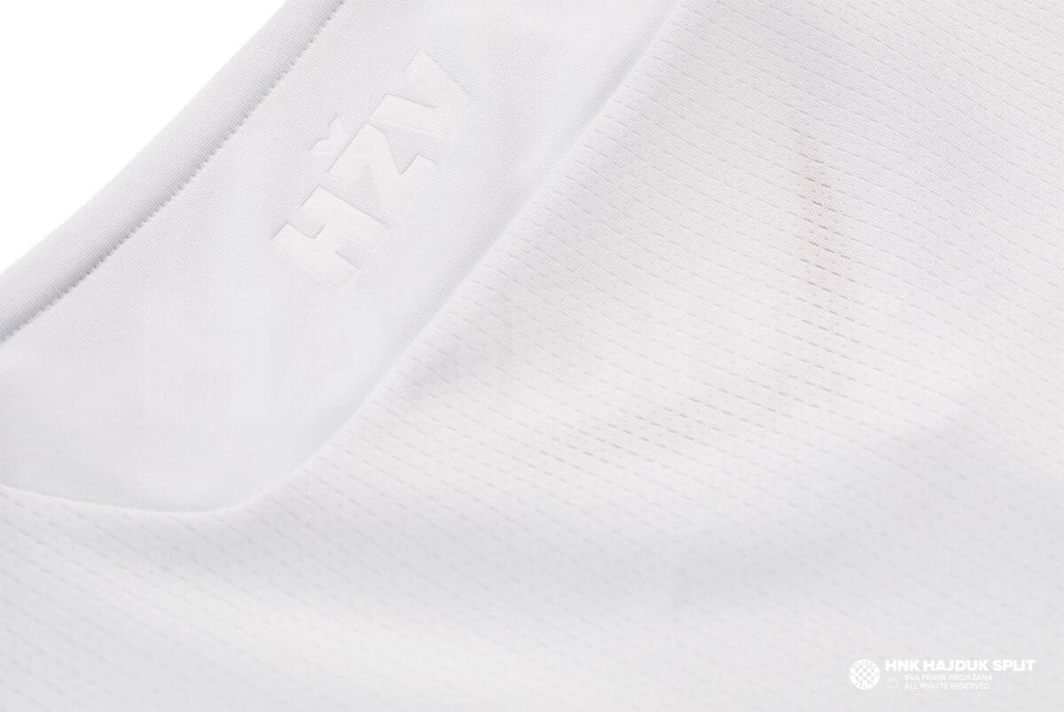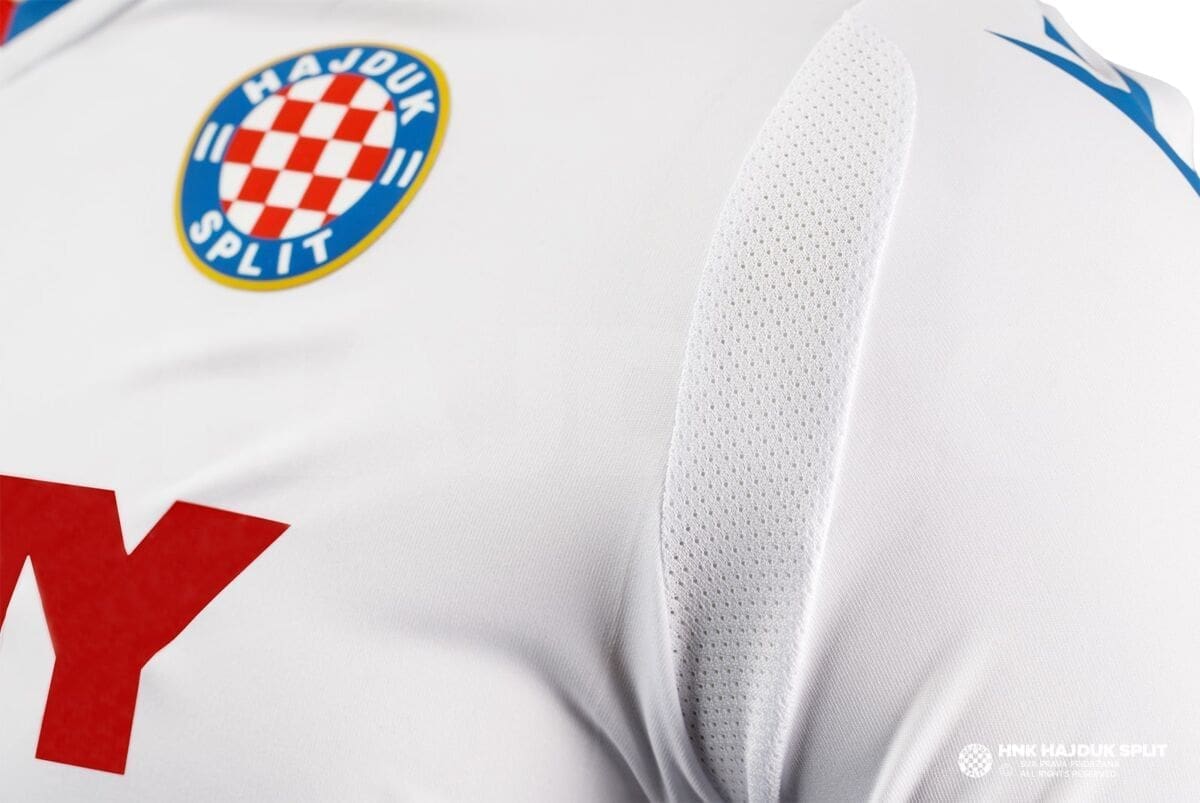 Na prednjoj strani desno se nalazi logotip Macrona, dok je lijevo, na srcu, utisnut grb Hajduka u silikonskom tisku. Na stražnjoj strani dresa, na ovratniku, nalazi se reljefno utisnuti natpis HŽV (Hajduk živi vječno). Dres je slim fit kroja s micromash umecima koji osiguravaju bolju prozračnost.