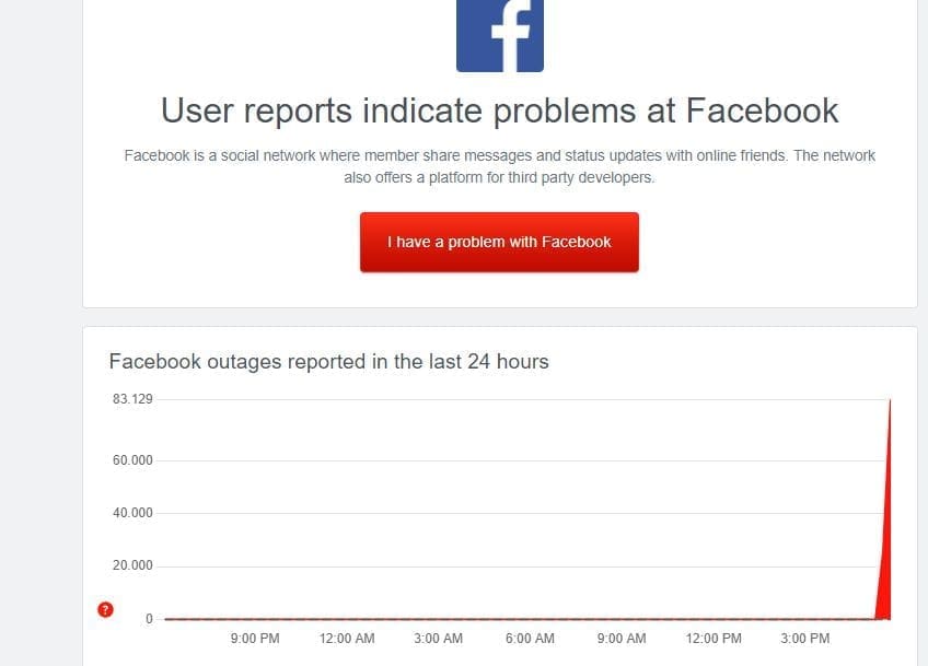 Iako su se prvi problemi javili oko 17 sati, oko 17:40 servisi Facebooka potpuno su pali!