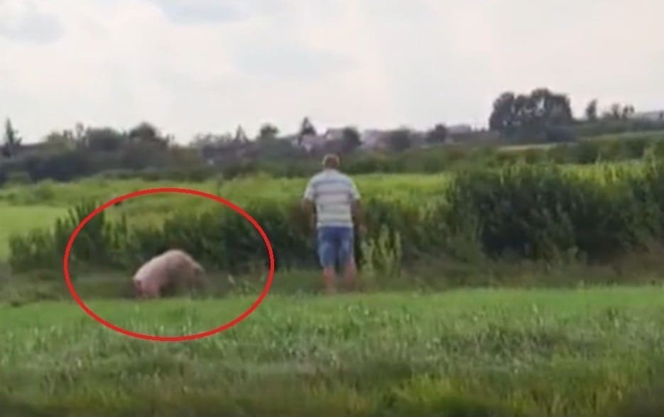 Gledatelj Dnevnika Nove TV Jozo Pavić u podnevnim satima u petak snimio je svinju koja je po svemu sudeći ispala vlasniku iz kamiona.