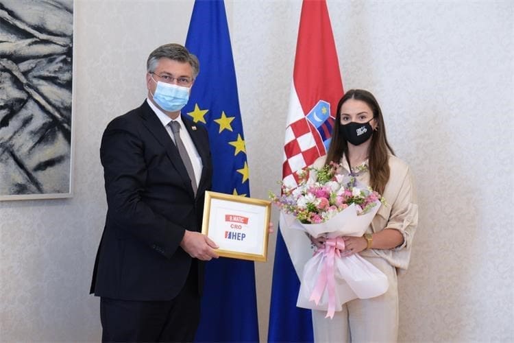 Predsjednik Vlade Andrej Plenković primio je danas u Banskim dvorima svjetsku prvakinju u judu 2021. Barbaru Matić.