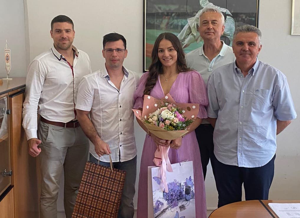 Naša judašica ostvarila je povijesni uspjeh za hrvatski sport, a predani rad i stručnost u klubu došli su do izražaja. Predsjednik Saveza Andrija Polić je Barbari uručio cvijeće, a druženju su nazočili i glavni tajnik Vlatko Škiljo i ravnatelj Javne ustanove športski objekti - Tomislav Borozan.