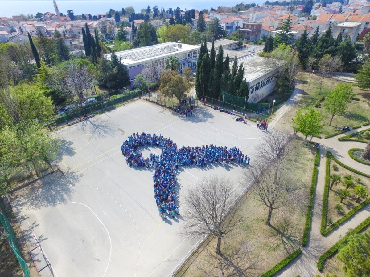 Tijekom utorka učenici i nastavnici Osnovne škole Ostrog u Kaštel Lukšiću te udruga „Naša dica'' su se okupili na školskom igralištu te sudjelovali u formiranju milenijske fotografije povodom Svjetskog dana svjesnosti o autizmu. Djeca su obukla plave majice i na satovima likovnog izradili simbolične puzzle te je formacija fotografirana iz zraka dronom.