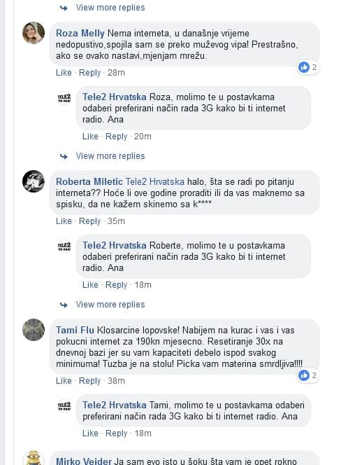 Brojni korisnici su se na problem požalili i na službenoj Facebook stranici teleoperatera gdje im administratori savjetuju da odaberu preferirani način rada 3G u postavkama. Pokušali smo, ne ide.