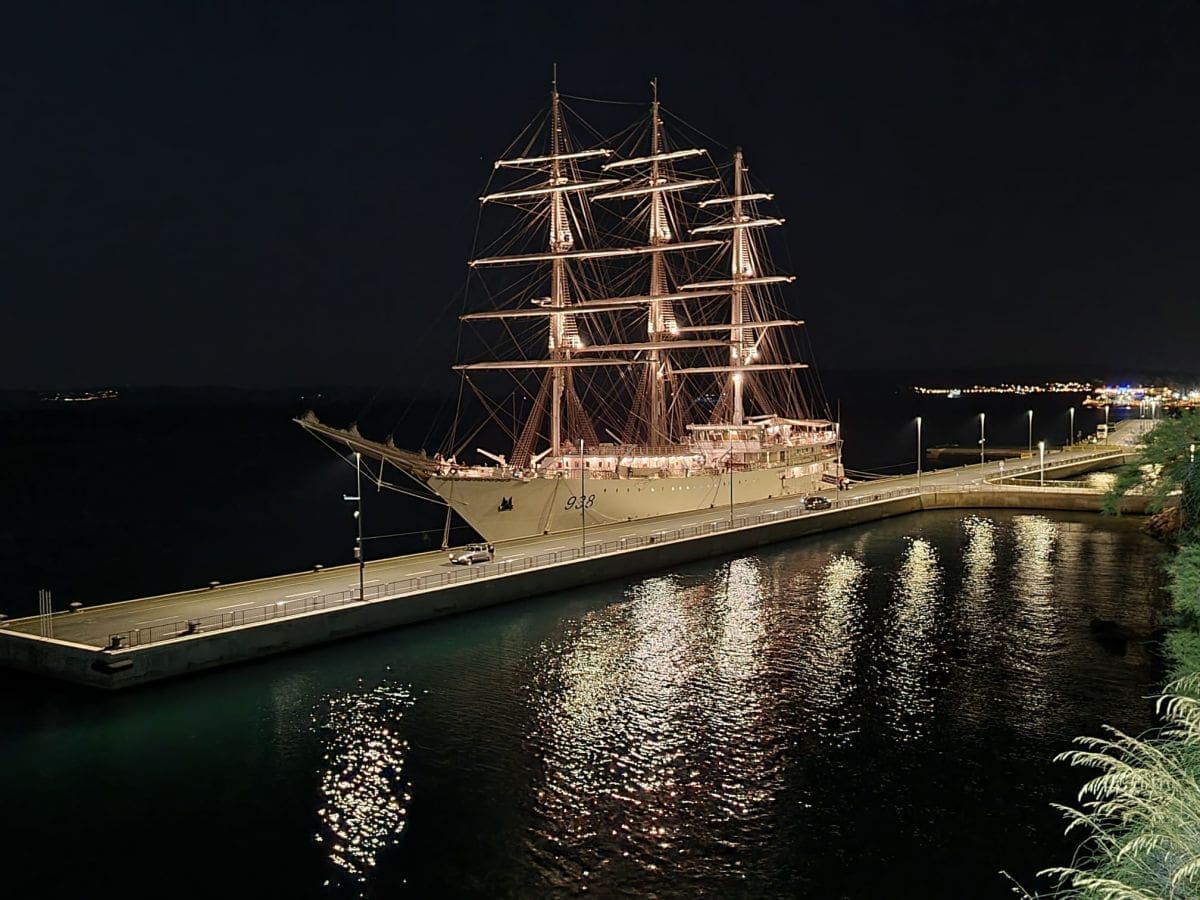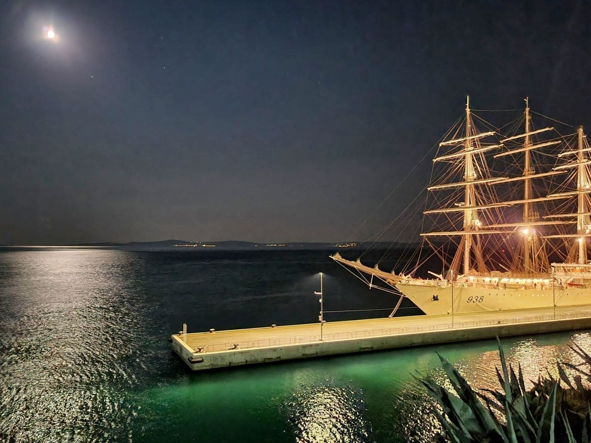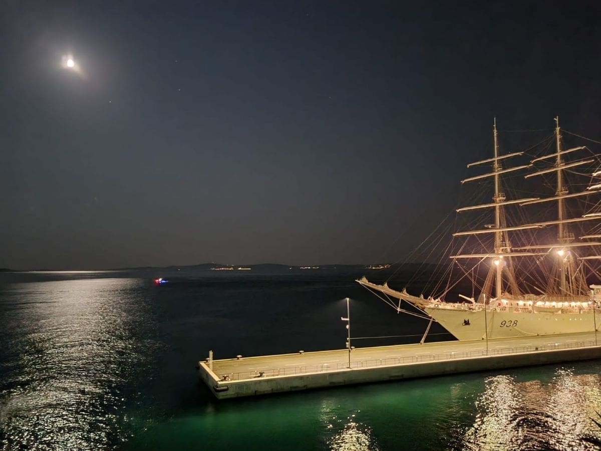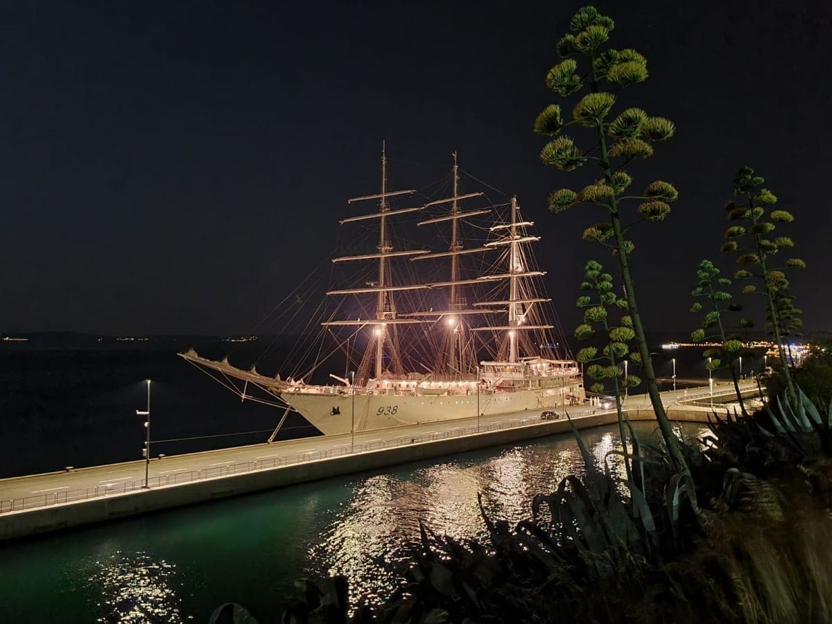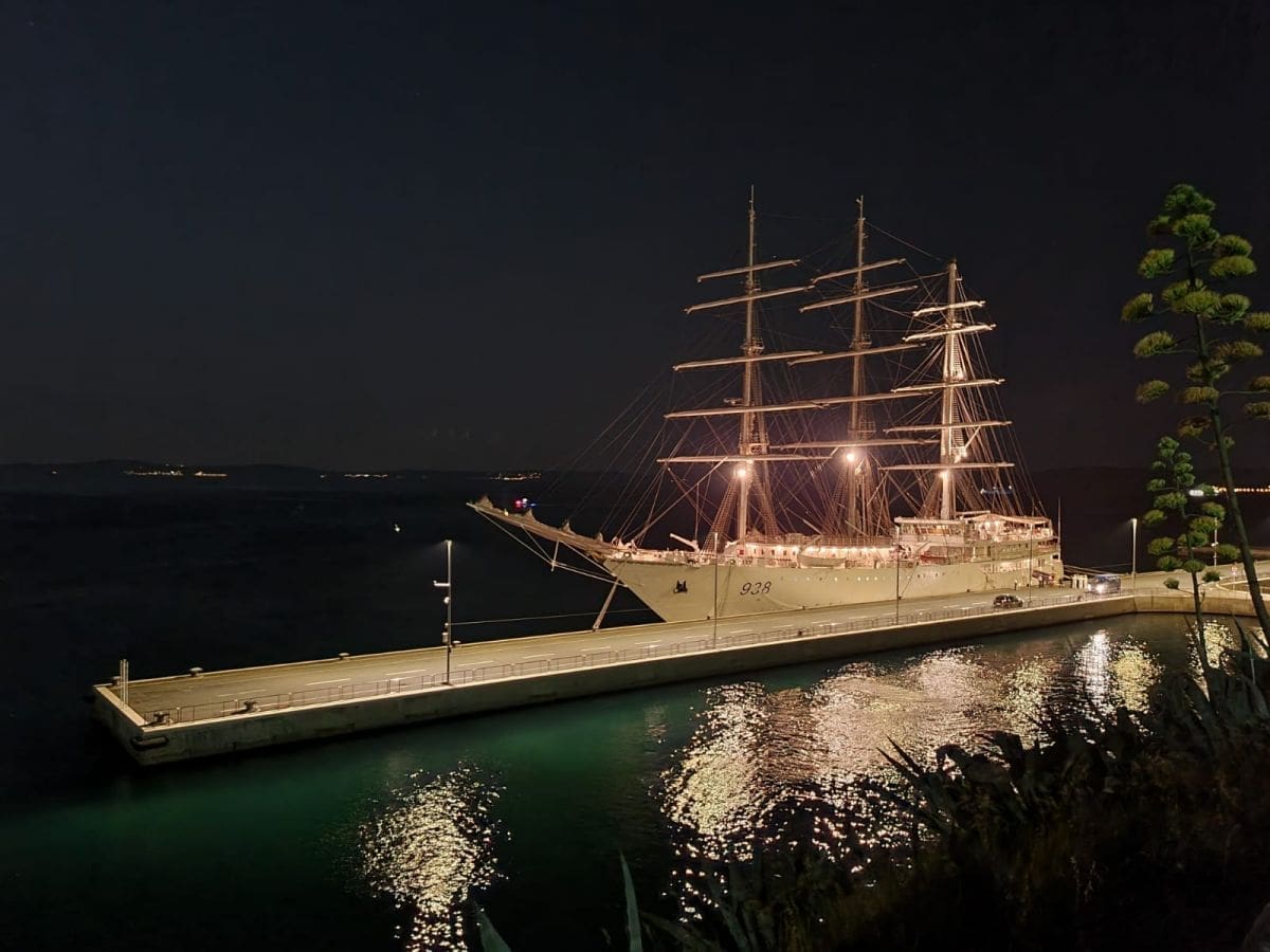 Pažnju velikog broja ljudi, što stranaca, što domaćih, privukao je jedrenjak koji se nalazi na vanjskom vezu Trajektne luke Split. Radi se o školskom jedrenjaku alžirske ratne mornarice El Mellah koji će u Splitu biti do četvrtka. Jedan je od najvećih školskih jedrenjaka na svijetu, sagrađen je u poljskom brodogradilištu, u Gdanjsku.