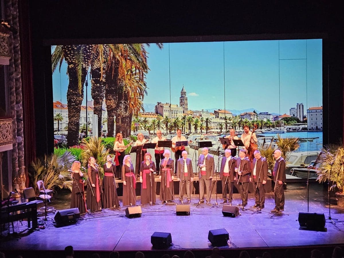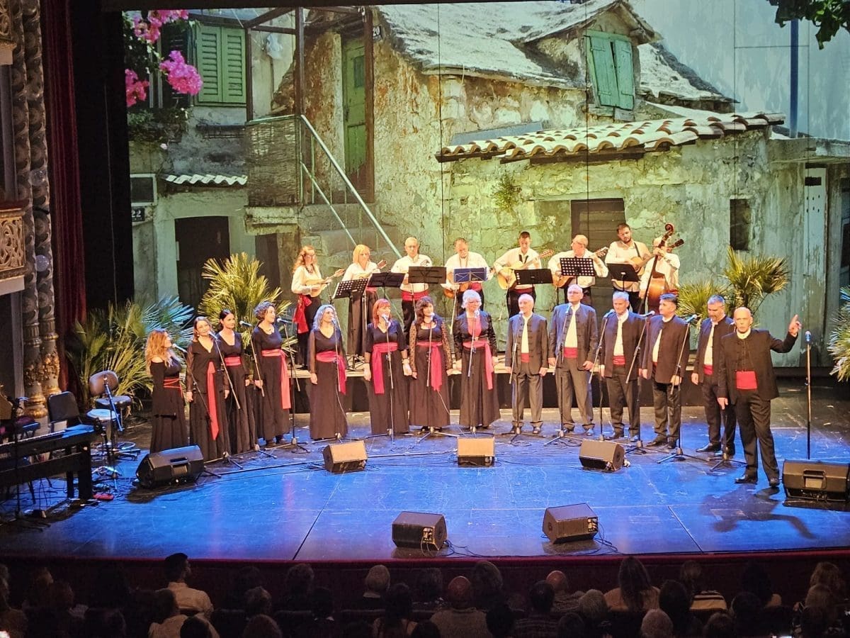 Klapa koju čini osam ženskih i šest muških vokala, te osam glazbenika izvela je 20-ak pjesama iz svog bogatog repertoara. Bilo je tu tradicionalnih dalmatinskih, starogradskih i zabavnih skladbi obrađenih za ovu klapu kako od bivšeg voditelja Remija Kazinotija tako i od današnjeg voditelja Vilibalda Pečenika.