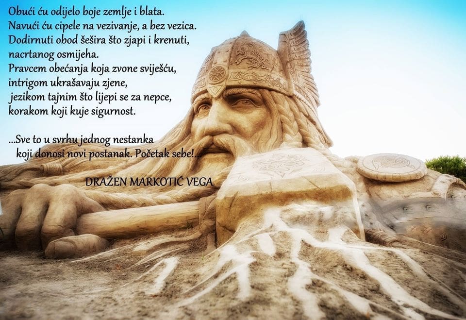 Dražen Markotić Vega sjajan je pisac, pjesnik. On je iz Vrgorca kao i Tin Ujević. On nije Tin, on je Dražen, ali jednako snažan u iskazu. Ne znam u što je vjerovao Tin, ali znam da Dražen pripada prirodi, šumi iz koje crpi snagu i sve ostalo što šuma može dati. Vega kaže: