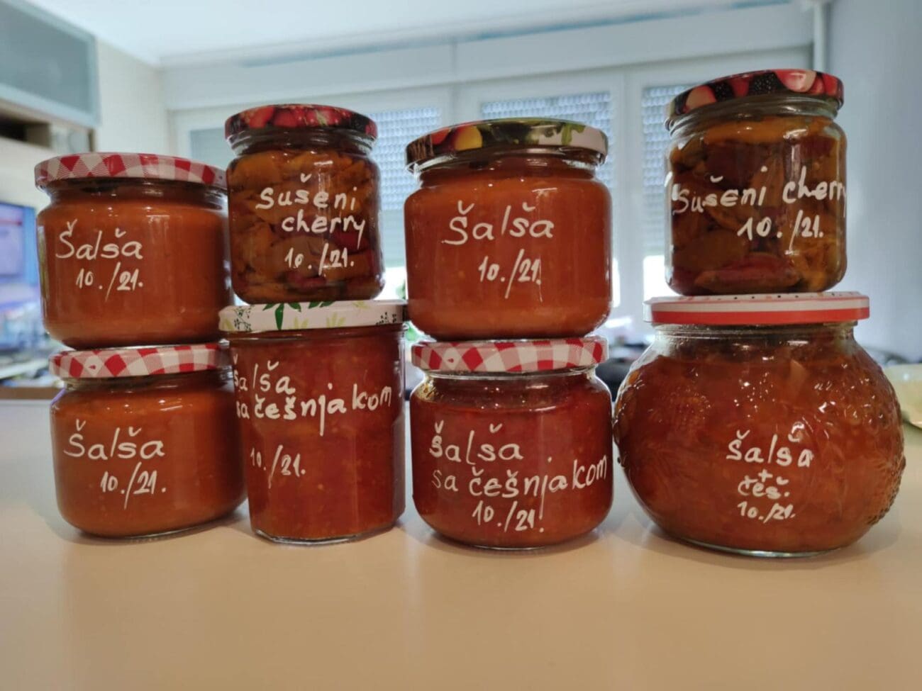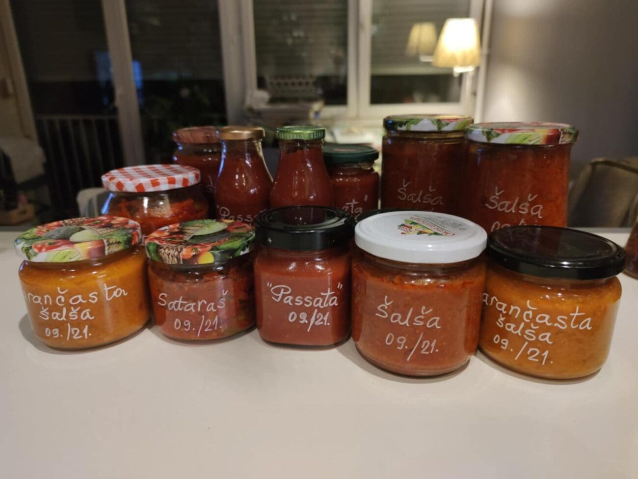 Za mene je sve šta postoji istovremeno prostor za istraživanje i avanturu. Ha, di je tu avantura, upitat ćete, kad se zna da je šalša – šalša. E, može i drugačije. Najprije napravim onu koja je baš po našem guštu i navikama: pome, bez guljenja i uklanjanja sjemenki (osim koliko je nužno za odvajanje za buduća sijanja, dijeljenja i poklanjanja), maslinovo ulje, petrsimul, kapula ili ljutika ako je ima, malo selena, sol, mljeveni čili. I duuugo kuvanje. E, onda ide serija bez kožice, pa serija s češnjakom, pa pasata. I tu nije kraj. Sad idemo na barem tri boje: crvene i rozaste, pa žute, bijele i narančaste, i još zelene, crne i ljubičaste.