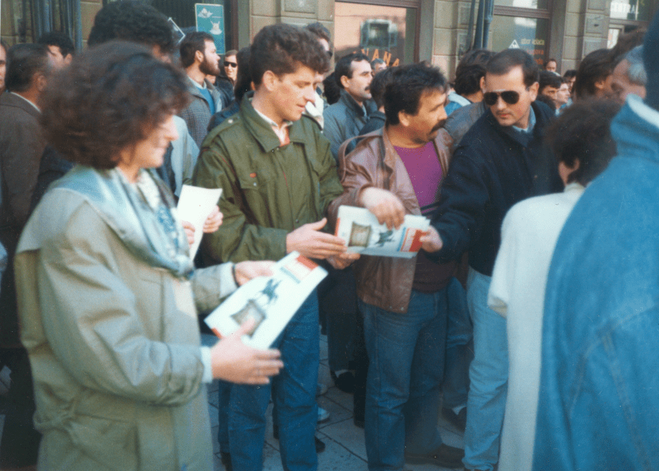 Na Dan ljudskih prava, 10.prosinca 1989. Prvi s lijeva je Ivica Tafra, predsjednik