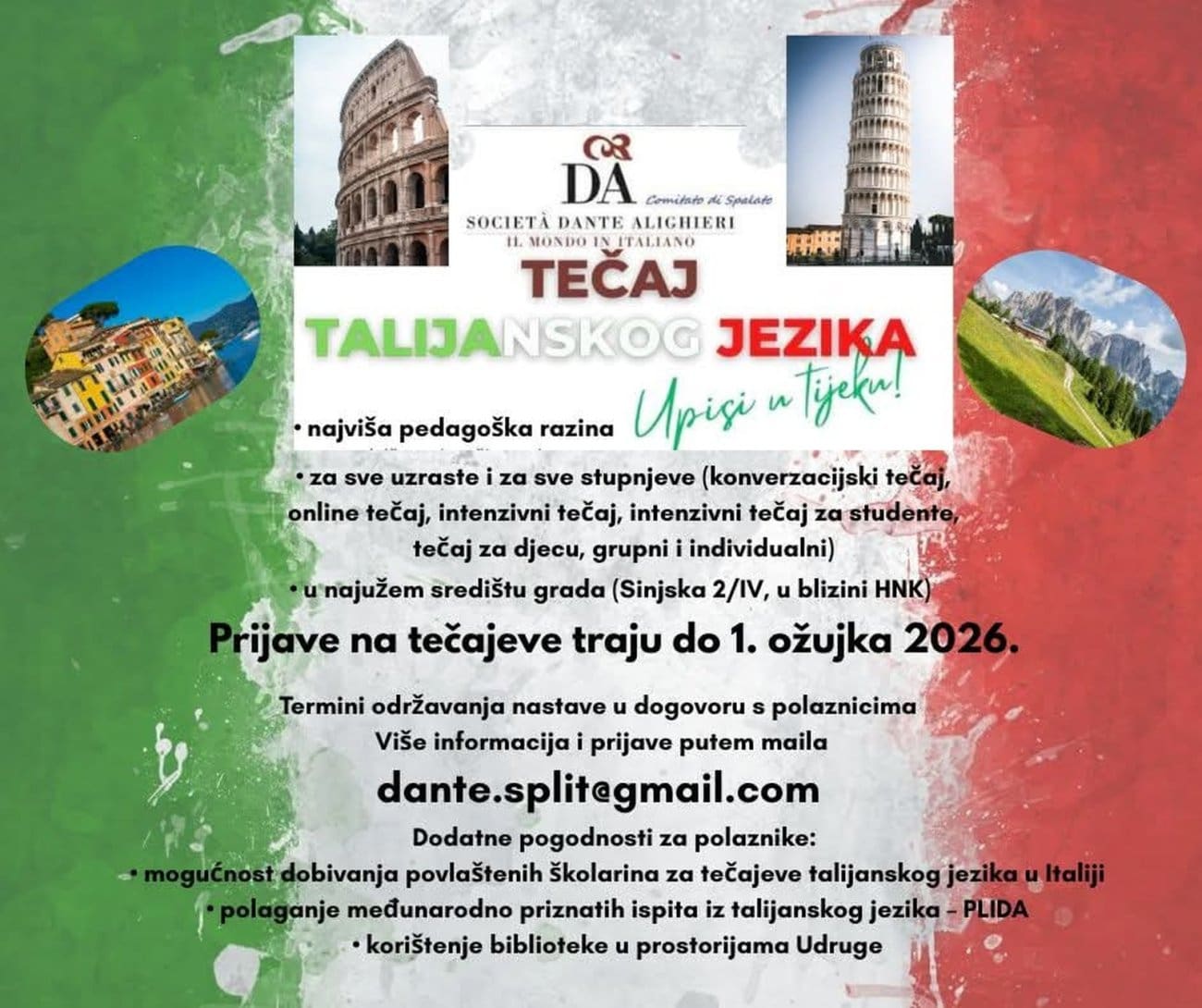 Znanje stranog jezika danas je mnogo više od formalne vještine. Ono je prednost na tržištu rada, ključ za lakše putovanje i most prema novim kulturama. Upravo zato tečajevi talijanskog jezika u organizaciji Società Dante Alighieri – Comitato di Spalato i ove godine privlače velik interes polaznika.