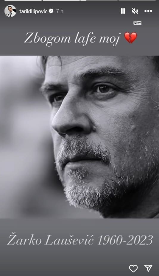Voditelj i glumac Tarik Filipović (51) se na svom Instagramu oprostio od glumca Žarka Lauševića. Podijelio je crno-bijelu fotografiju pokojnog glumac i napisao kratku poruku.
