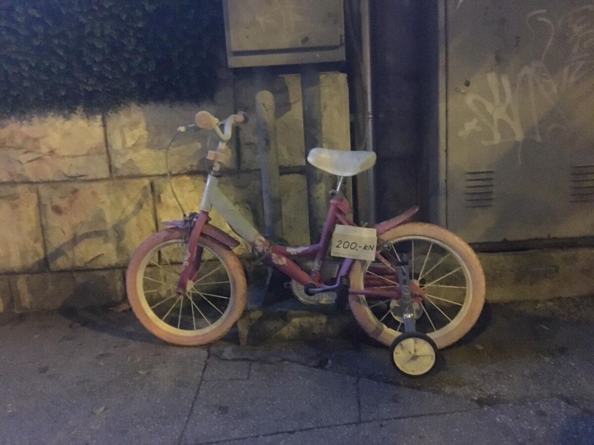 Naime, cijelu noć je na izlogu stajao, vjerovali ili ne, rozi dječji bicikl.