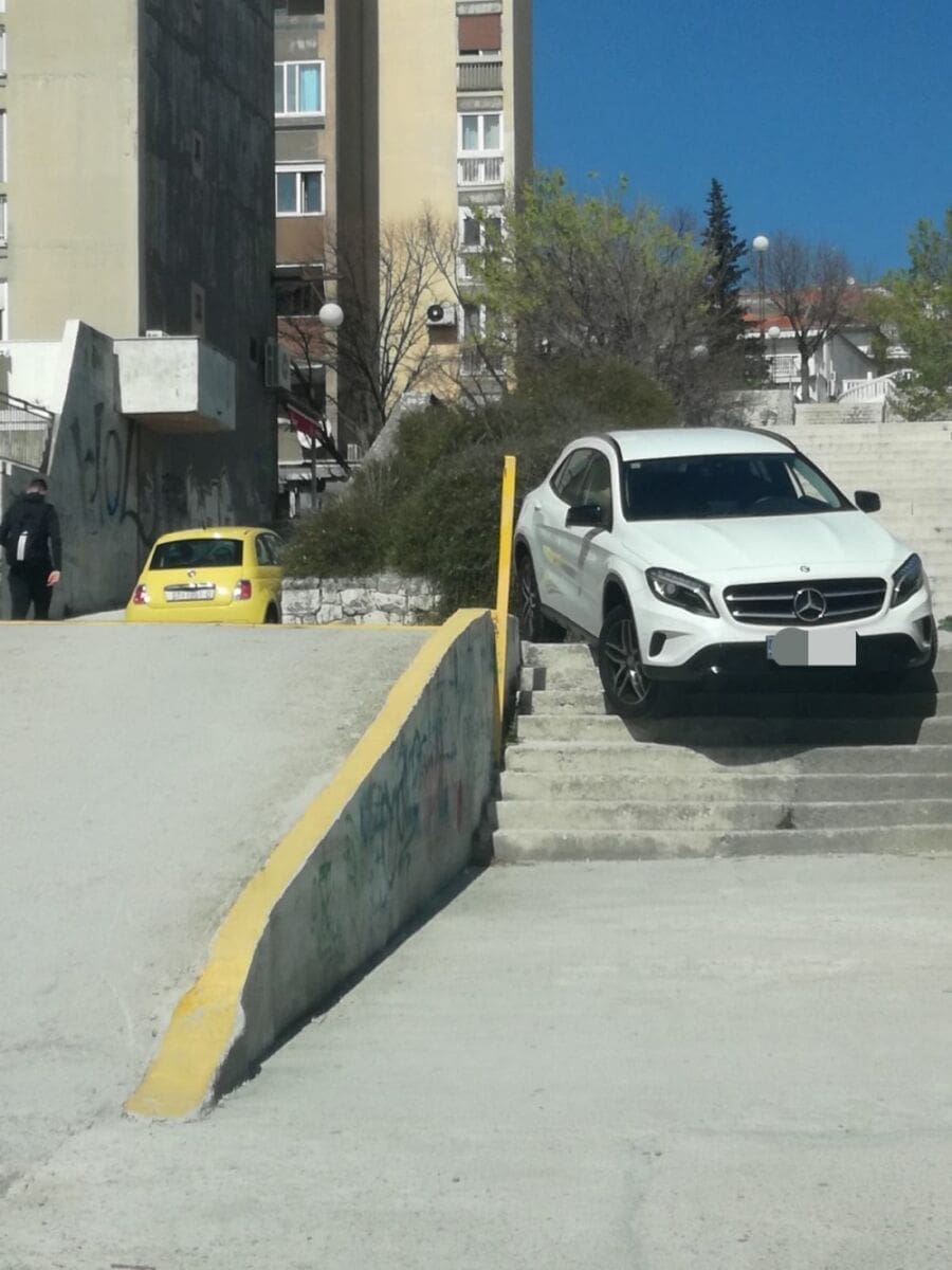 Naime, u Ulici Fausta Vrančića (u blizini Kampusa, Umjetničke škole u Splitu i Tommy-a) netko je očito morao žurno parkirati - do te mjere da su mu se omilile i stepenice.