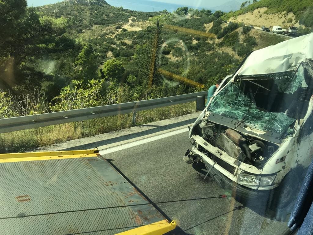 Vozač kombi vozila je ozlijeđen, a Jadranska magistrala (D8) je zatvorena u oba smjera.