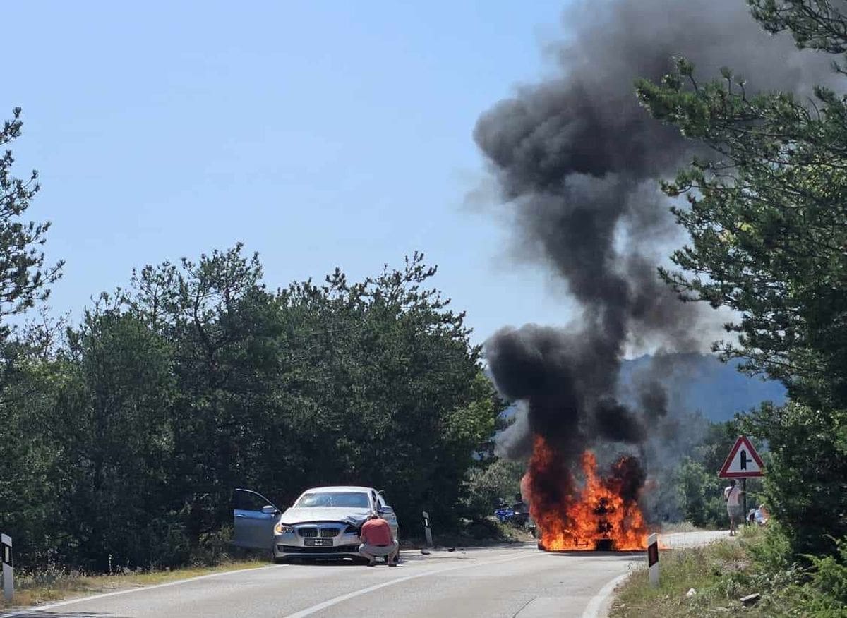 Naime, u mjestu Nerežišće na državnoj cesti D113 sudarili su se quad i osobni automobil pri čemu se quad zapalio.