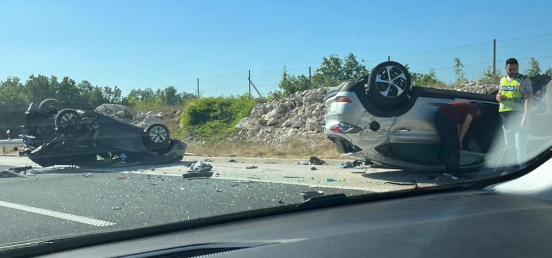 Kako nam je kazala Sanja Nazlić iz PU splitsko-dalmatinske, sudarila su se dva vozila, prilikom čega su se oba prevrnula na krov.