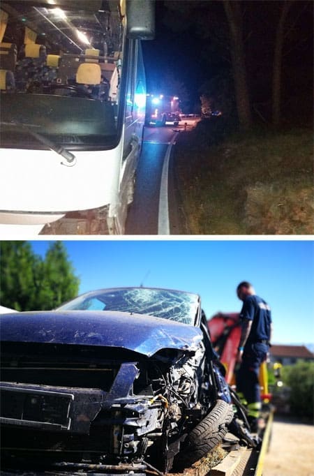 Njegova suputnica, usprkos vidljivoj ozljedi glave sama je izašla iz vozila dok u autobusu osim velikog šoka nitko od putnika nije pretrpio nikakve ozljede. Odmah po dojavi na mjesto nesreće su izašle sve žurne službe, policija. hitna pomoć i vatrogasci.
