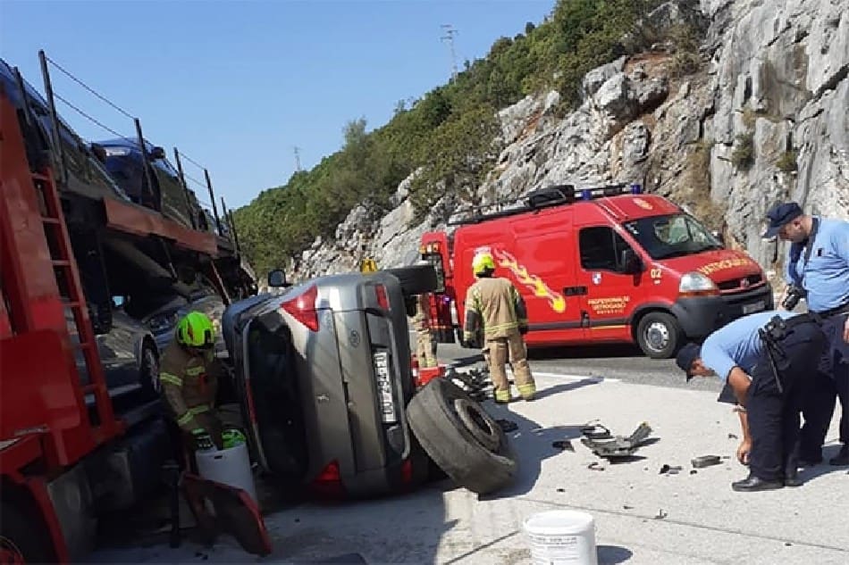 Oko 14:30 sati na Jadranskoj magistrali na skretanju prema Blacama dogodila se teška prometna nesreća u kojoj su sudjelovala dva osobna automobila i jedan kamion.
