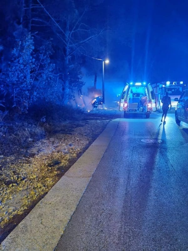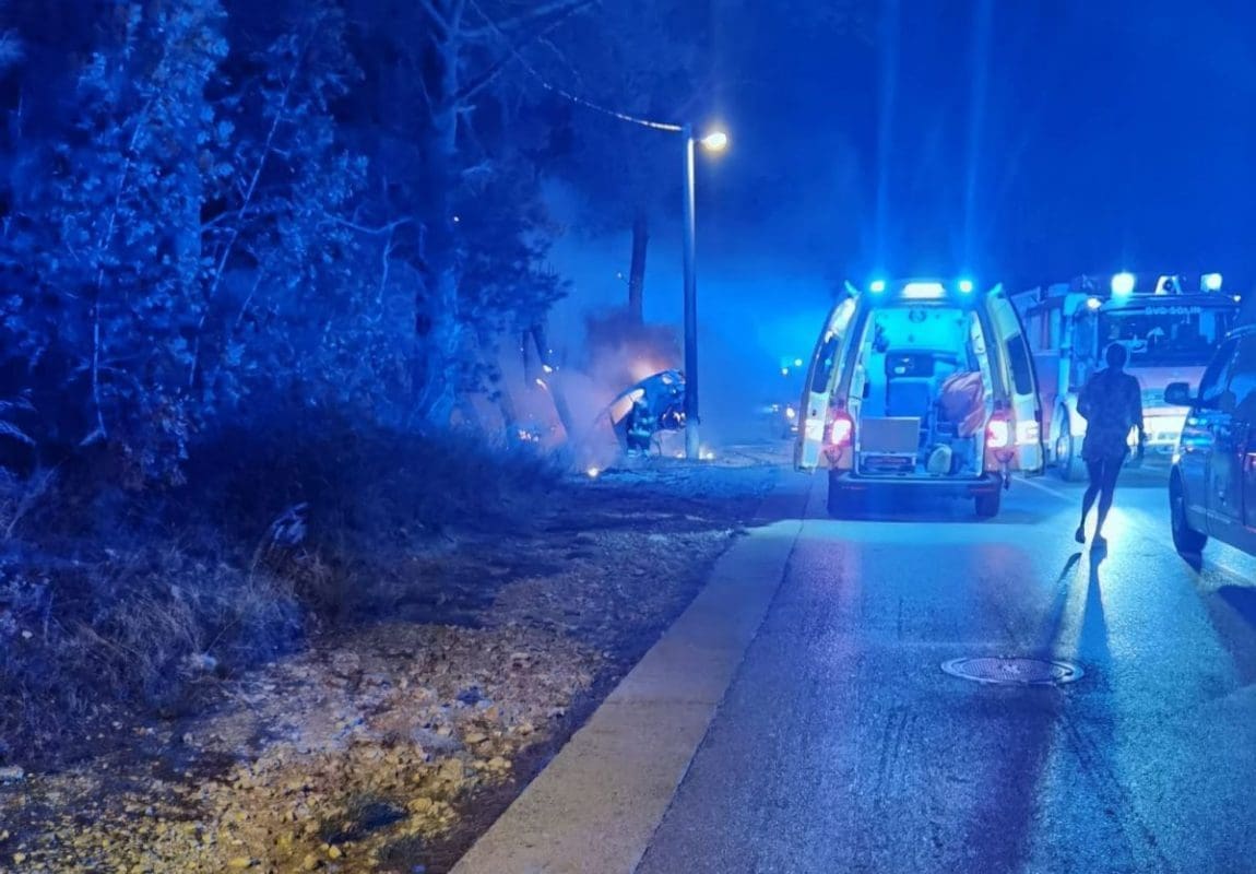 Kako je izvijestila PU splitsko-dalmatinska, osobni automobil udario je u stup nakon čega se vozilo zapalilo i u potpunosti izgorjelo.