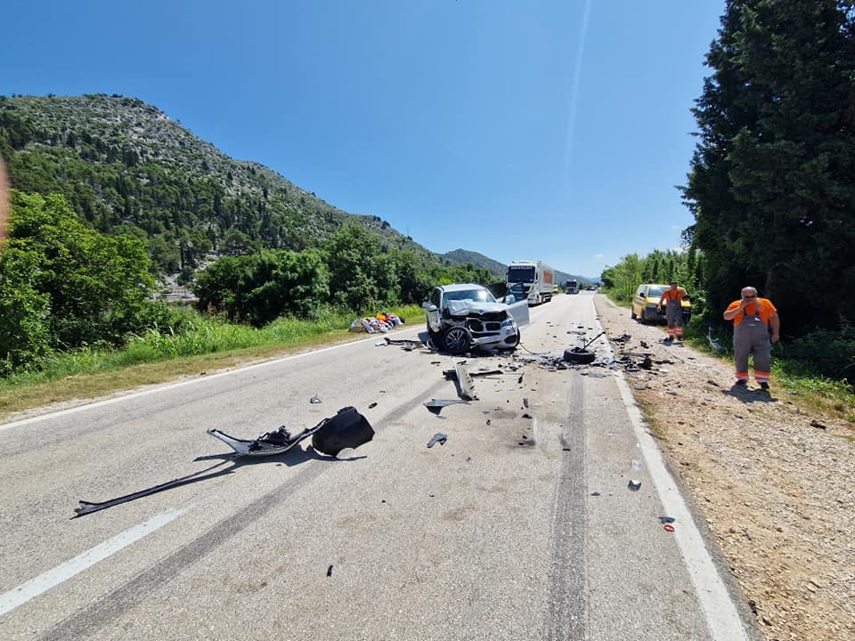 Na teren su izišli djelatnici policije, vatrogasaca i Hitne medicinske pomoći iz Ploča. Dvije osobe prevezene na Hitnu u Ploče, a očevid je u tijeku.