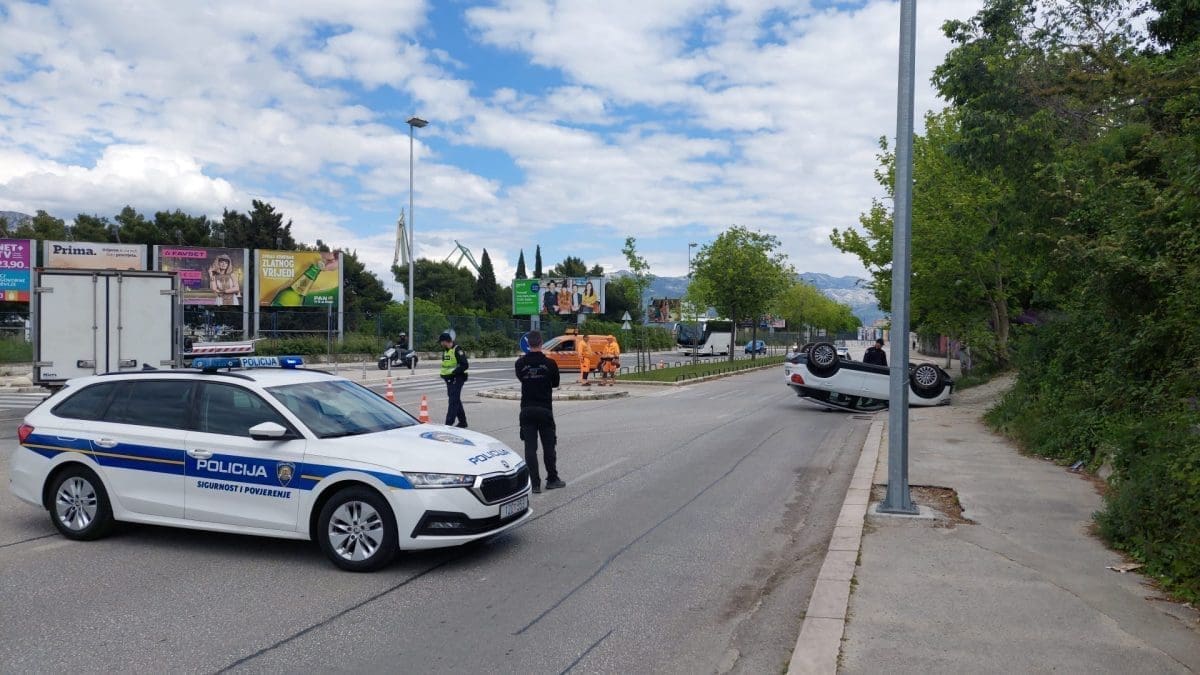 Nešto iza 12.30 sati dogodila se prometna nesreća na Putu Supavla u Splitu. Jedno vozilo je završilo na krovu, a tom prilikom je oborena pješakinja.