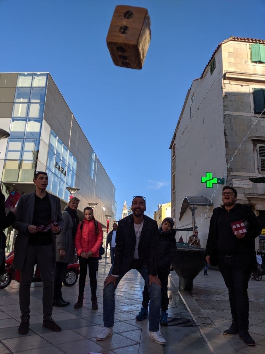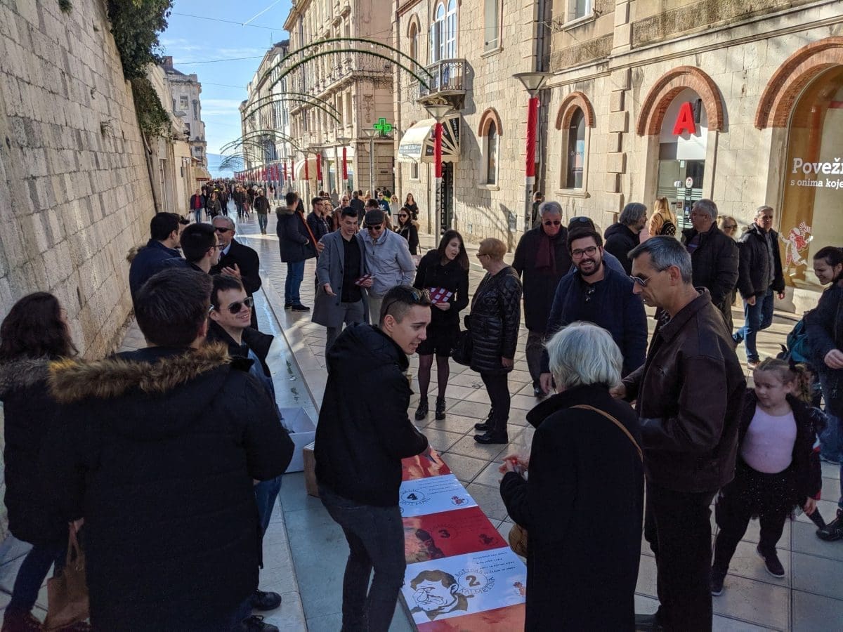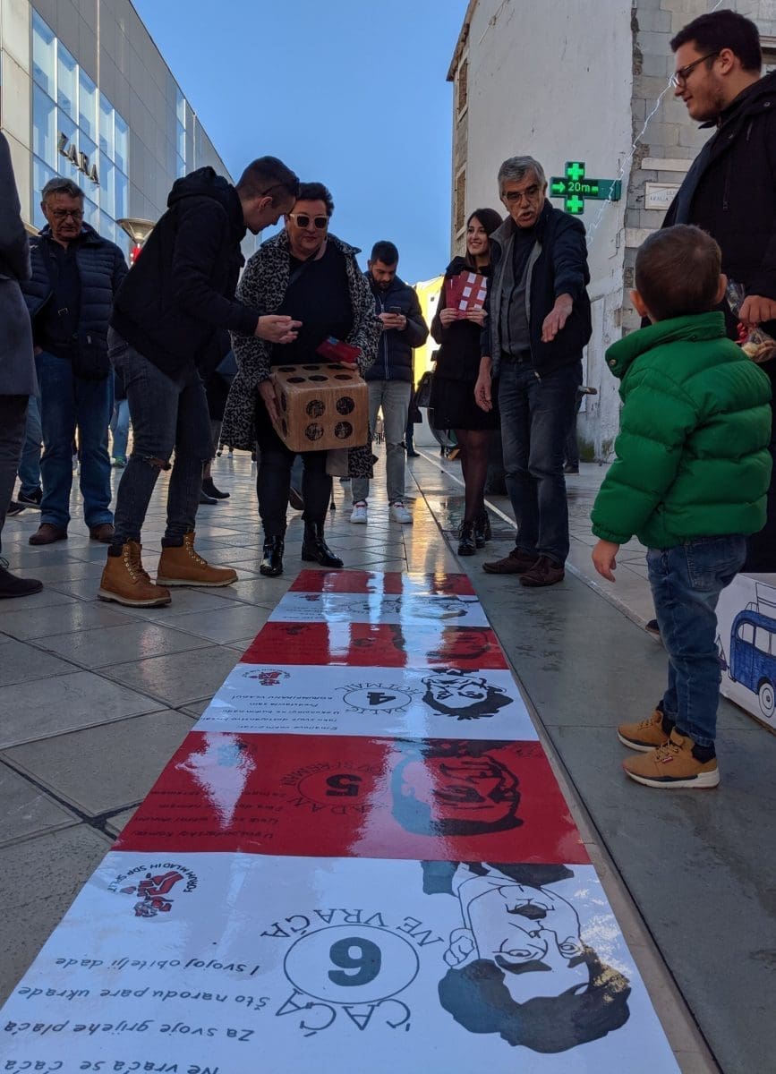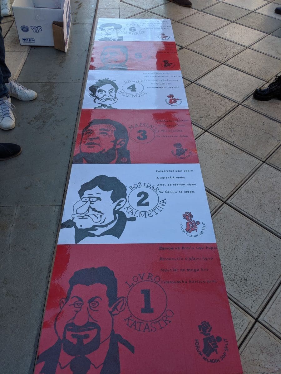 - Budući da joj je rejting u Zagrebu naglo porastao povodom izjave o Bandiću i kolačima, slično smo odlučili napraviti i u Splitu. Nažalost, zbog izbornih obveza predsjednica danas nije mogla biti s nama, no poslala nam je autobus prepun kolača, koje smo zajedno s našim sugrađanima odlučili podijeliti njenim najbližim prijateljima, donatorima i stranačkim kolegama. Bacanjem kocke sugrađani su odabirali kojem će od Kolindinih bližnjih odnijeti kolače - Tonći Kačić Bartulović, predsjednik FM SDP-a Split.