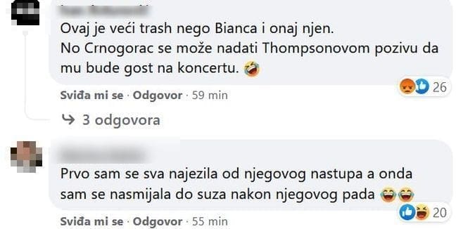 "Ovaj je veći trash nego Bianca i onaj njen. Može se nadati Thompsonovom pozivu da mu bude gost na koncertu", dodao je komentator.