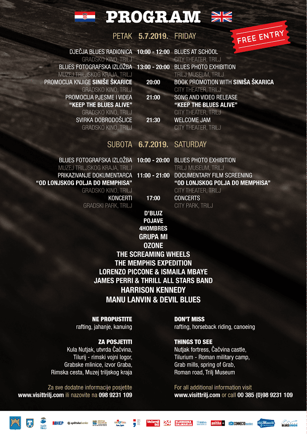 Festival je počeo u Gradskom kinu Trilj radionicom za djecu Blues at School, edukativnim satom o bluesu na kojem su Boris Hrepić Hrepa, Lorenzo Piccone i Ismail MBaye djeci i zainteresiranima održali predavanje o počecima i razvoju bluesa. Točno u podne otvorena je izložba fotografija u Muzeju Triljskog kraja, a u popodnevnim satima bit će predstavljanje knjige Siniše Škarice u Gradskom kinu.